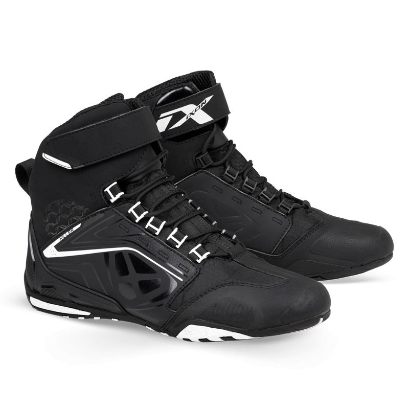 Baskets Ixon KILLER WP: Présentation: IXON vous propose ses baskets moto au look sportif pour homme la KILLER WP : Matière: En polyuréthane microfibre et Ripstop alvéolé pour plus de résistanceDoublure: Membrane imperméable et respiranteProtections: Pointe renforcée Talon renforcéLes « + »: Tige haute avec serrage Velcro Fermeture par lacets Languette d’enfilage à l’arrière Semelle extérieure favorisant un meilleur ressenti sur et sous le pied