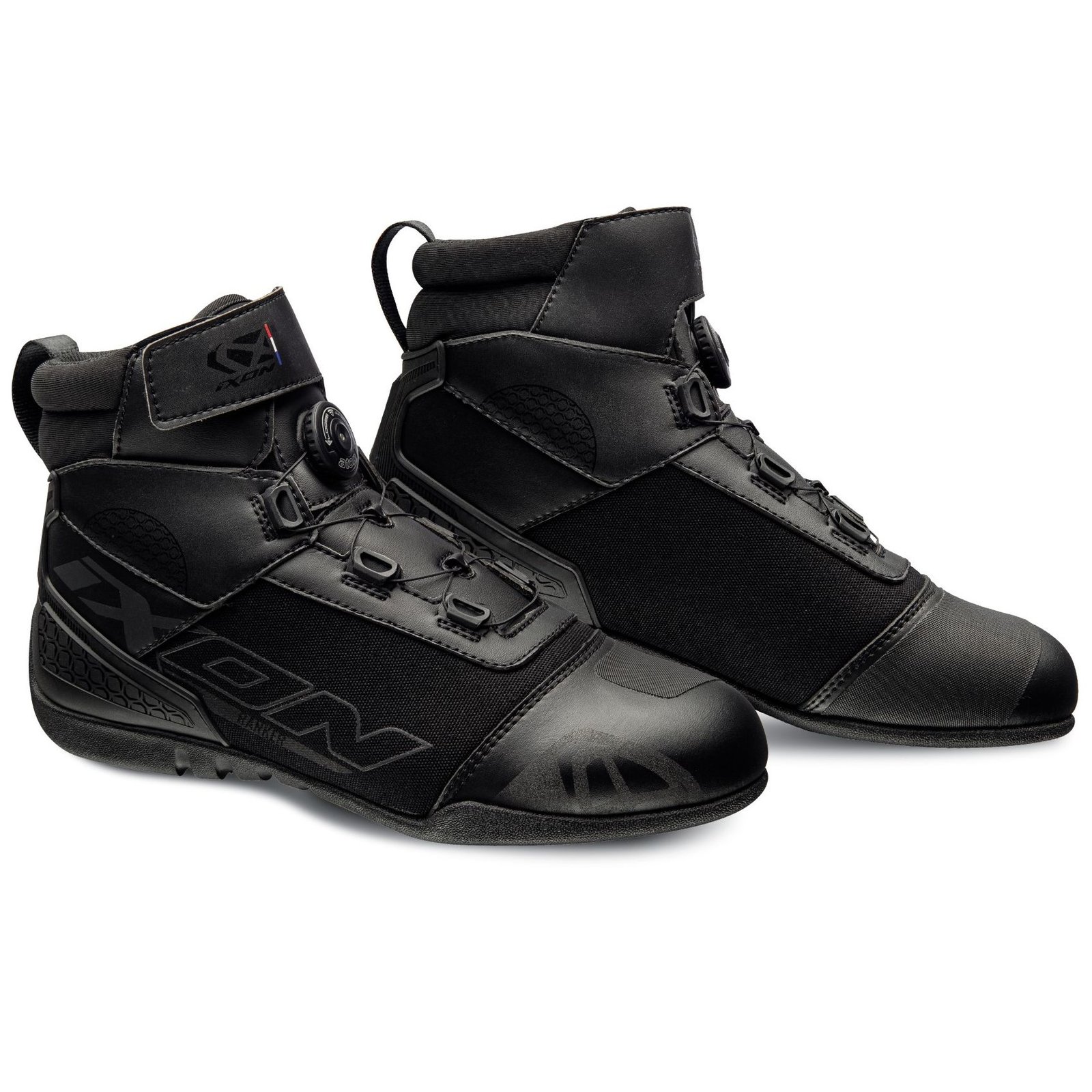 Baskets Ixon RANKER: Présentation: IXON vous propose ses baskets moto homme les RANKER : Matière: En polyuréthane microfibre, moussé sur l’épaisseur, pour un effet surface craqueléeProtections: Protections malléoles Talon renforcé Pointe renforcéeLes « + »: Fermeture et ouverture par crémaillère ATOP avec câble métal Patte de serrage Velcro Languette anatomique d’enfilage Néoprène Print réflectif sur le côté et les flanc pour une visibilité optimisée