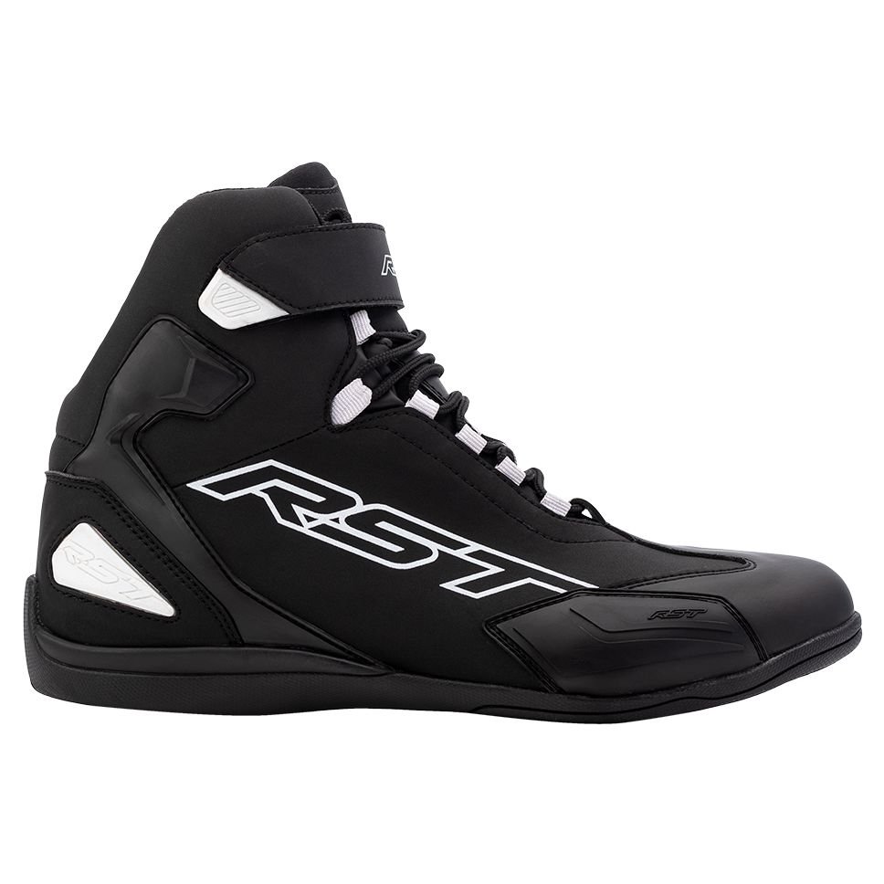 Baskets RST SABRE: Présentation: RST vous propose ses baskets montantes moto homme les SABRE : Matière: En microfibre, matière synthétique reconnu pour être aussi résistante que le cuir naturel Panneaux intérieures en cuir perforé pour un flux et une circulation de l’air optimisésProtections: Protections malléoles en TPU Talon renforcée en TPULes « + »: Tige montante avec patte de serrage Velcro Fermeture par lacets Semelle intermédiaire en polycarbonate anti-torsion