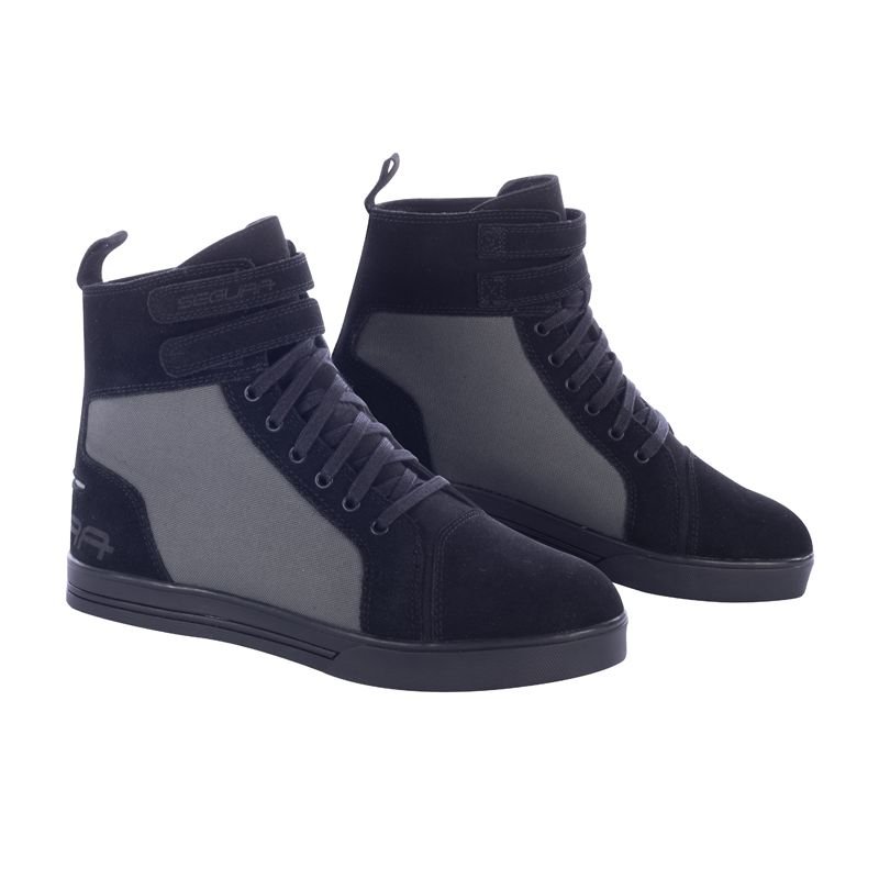 Baskets Segura CONTACT: Présentation: SEGURA vous propose ses baskets montantes moto homme de la gamme STREET les CONTACT : Matière: Mix de  Nubuck et Polyester reconnus pour la résistanceDoublure: Doublure de confort en polyester Membrane étancheProtections: Renforts malléoles intégrés Pointe renforcée Talon renforcéLes « + »: Tige montante Fermeture par lacets Patte de serrage Velcro Languette d’enfilage Elément réfléchissant pour une visibilité optimisée Semelle anti-écrasement transversal