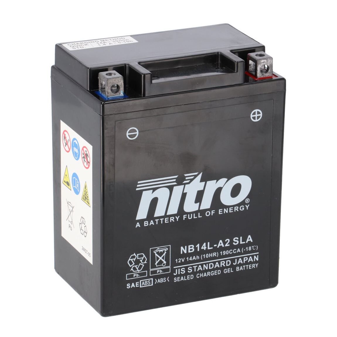 Grace à cette technologie SLA, ces batteries ont plus de capacité de démarrage pour un volume plus réduit.Ces types de batteries ont le même système interne, réglé par une soupape, pour récupérer les gaz comme les batteries sans entretien mais ils sont complètement étanches donc déjà rempli d?acide.Avantages:Plus de capacité de démarrage pour un volume et un poids réduitPrête à l?emploi, remplie d?acide et chargéeÉtanchéité garantie, manipulation facile en toute sécurité, impossible de renverser l?acideSans entretien après le montageAGM-Gel Technologie (Fibre de verre absorbé, permet de monter la batterie dans toutes les positions.)Utilisation possible dans toutes les positions Dimensions (+/- 2 mm):Longueur : 134 mmProfondeur : 89 mmHauteur : 166 mmBorne + : DroiteCaractéristiques:Puissance (Ah): 14Voltage: 12vPoids : 5.50 kgVolume d’acide: 0.90 litres