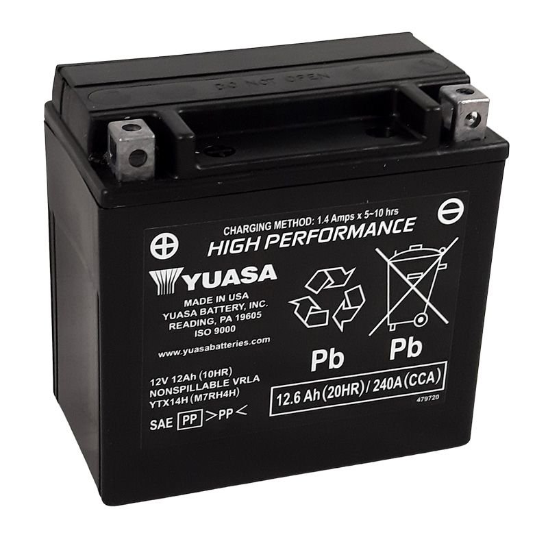 Les batteries Yuasa sont fabriquées par le plus grand fournisseur de batteries japonais, elles sont de très haute qualité.Cette batterie est prête à l’emploi, vous pouvez l’utiliser de suite. Elle est sans entretien et ne nécessite donc pas de vérifications particulières ni d’achat d’acide.Conseil premier montage : Une première charge à l’aide d’un chargeur moto est indispensable avant le montage.Dimensions (+/- 2 mm):Longueur mm: 150Largeur mm: 87Hauteur mm: 145Borne + : GauchePuissance (Ah): 12Voltage: 12vPoids: 4.80 kgSi la batterie n’est pas utilisée, il faudra la mettre en charge une fois par mois (avec un chargeur de batterie moto).