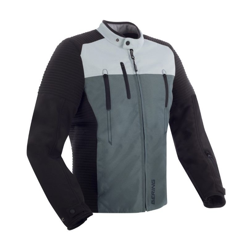 Blouson Bering CROSSER: Présentation: BERING vous propose son blouson textile moto homme le CROSSER : Matière: En Fibre Tech 600D dont le tissage offre une haute résistance Empiècements en Softshell reconnu pour ses propriétés déperlante et coupe-ventDoublure: Doublure de confort en Mesh, en fibres recyclées, pour plus de respirabilité Membrane BWTECH Super étanche et respirante Doublure thermique SHELLTECH Super amovibleProtections: Protections épaules Protect Flex ALPHA homologuées CE Protections coudes Protect Flex ALPHA homologuées CE Protections coudes réglables et ajustables Prédisposé à recevoir une protection dorsale Bering ALPHA niveau 1 ou niveau 2 homologuée CE en option Les « + »: Col court en Néoprène avec fermeture pression Patte de serrage pression aux poignets Poignets zippés afin de faciliter l’enfilage Surpiqûres droites à l’effet matelassé Système d?Aération ADS Eléments réfléchissants 3M Scotchlite pour une visibilité optimisée Body Fit : coupe ajustéePoches: 4 poches extérieures 1 poche avant-bras 2 poches intérieures 1 poche portefeuille