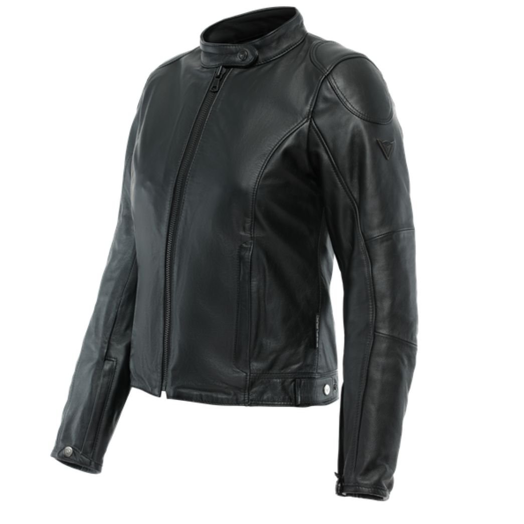 Blouson Dainese ELECTRA LADY: Présentation: DAINESE vous propose son blouson cuir moto femme l’ELECTRA LADY : Matière: En cuir de vachette LaverdaDoublure: Doublure fixe Sanitized® respirante et perforée pour une hygiène parfaite et un confort optimal Doublure thermique amovibleProtections: Protections épaules Pro-Shape 2.0 homologuées CE Protections coudes Pro-Shape 2.0 homologuées CE Prédisposé à recevoir une protection dorsale G1 ou G2 Les « + »: Col court avec fermeture pression Patte de serrage pression aux poignets Pattes d’ajustement pression à la taille Poignets zippés afin de faciliter l’enfilage et la mise en place de la manchette des gants Patchs avec coutures apparentes sur les épaules Boucle de raccordement blouson et pantalonPoches: 2 poches frontales 2 poches intérieures 1 poche intérieure sur la doublure thermiqueNotre avis: Le blouson femme Electra Lady est un classique de chez Dainese : une icône des vestes de moto en cuir pour femme!Celle-ci est dotée d?une poche pour la protection dorsale, de boutons sur les hanches, d?une couche thermique intérieure amovible en tissu Sanitized® respirant et perforé pour s?adapter aux climats des différentes saisons !