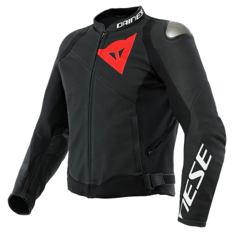 Blouson Dainese SPORTIVA PERF.: Présentation: DAINESE vous propose son blouson cuir perforé moto homme le SPORTIVA : Matière: En cuir de vachette Tutu premium reconnu pour sa douceur et sa résistance Inserts en tissu bi-élastique S1 sur les hanches et l’intérieur des bras Empiècement en cuir Microelastic 2.0 sur le dos pour augmenter la liberté de mouvementDoublure: Doublure Nanofeel® avec traitement aux ions d’argent Protections: Protections coudes souples Pro-Armor homologuées CE Protections épaules souples Pro-Armor homologuées CE Prédisposé à recevoir une protection dorsale Plaques en aluminium aux épaules interchangeables à l’extérieur Les « + »: Col court Patte de serrage Velcro aux poignets Boucles d’ajustement Velcro sur les hanches Poignets zippés afin de faciliter l’enfilage et la mise en place des manchettes gants 2 aérations latérales Zip de raccordement blouson et pantalonPoches: 2 poches extérieures zippées 1 poche intérieure