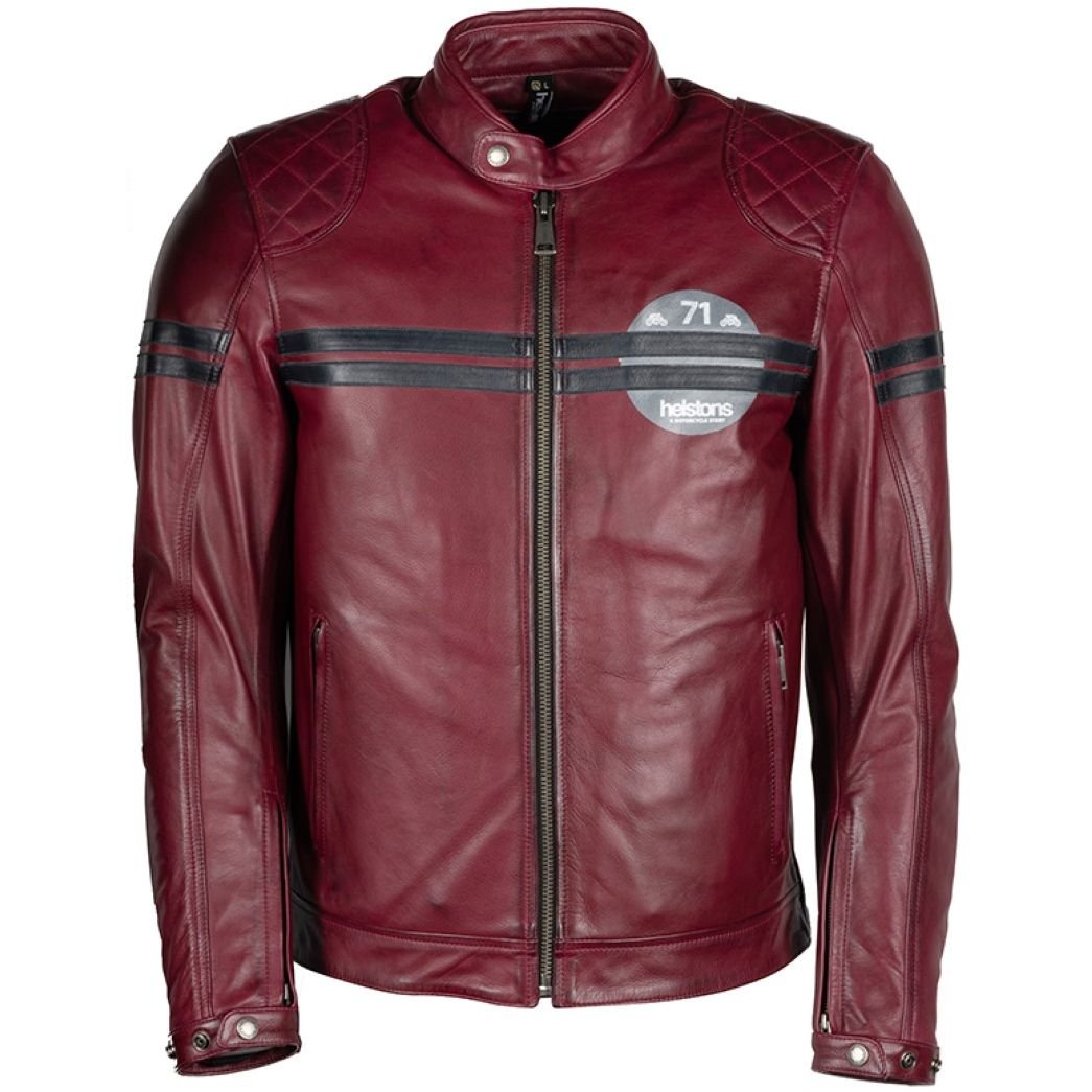 Blouson Helstons CHEVY CUIR BUFFALO: Présentation: HELSTONS vous propos son blouson en cuir moto homme le CHEVY BUFFALO :Matière: En cuir de buffle, épaisseur de 0.9 à 1 mm, cuir grainé reconnu pour sa grande résistanceCuir finition matDoublure: Gilet thermique thermo alu sans manches amovible Membrane étanche et respiranteProtections: Protections épaules amovibles homologuées CE Protections coudes amovibles homologuées CE Livré avec une protection dorsale homologuée CELes « + »: Col court avec patte de serrage pression Patte de serrage pression aux poignets Poignets zippés afin de faciliter l’enfilage et la mise en place de la manchette des gants Pattes d’ajustement pression à la taille Patchs épaules avec surpiqûres losanges Double bandes sur la poitrine à l’esprit Retro RacingPoches: 2 poches mains zippées 1 poche Napoléon zippée 1 poche intérieure 2 poches sur le gilet thermique amovible