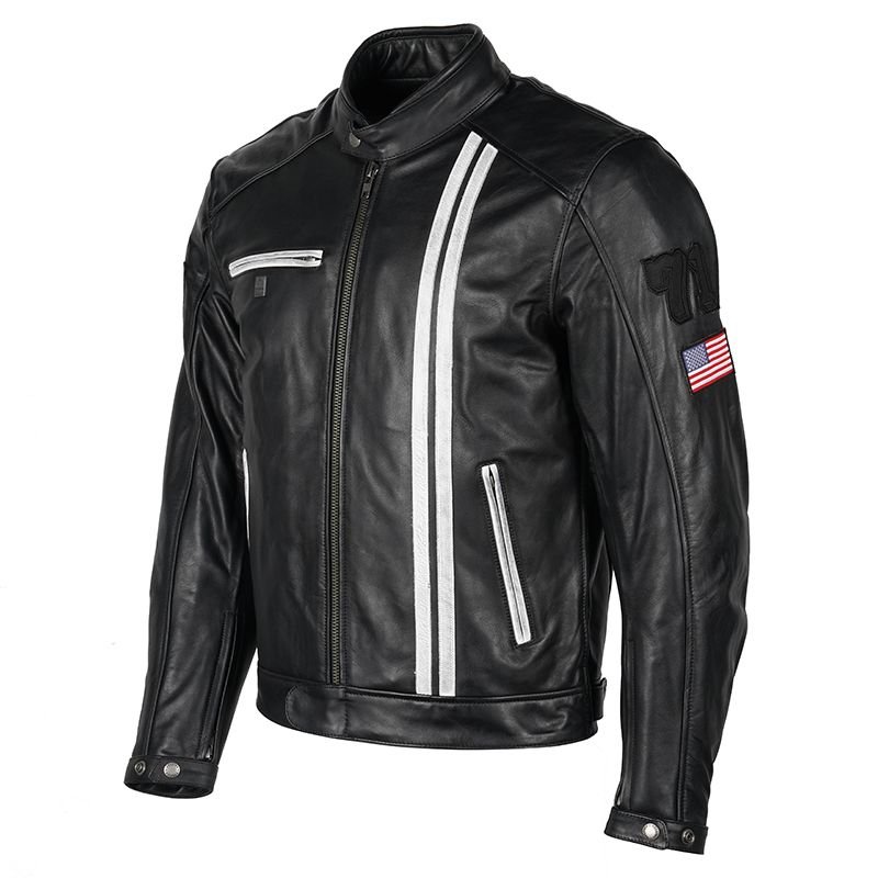 Blouson Helstons POWER: Matière: Cuir de vachette pleine fleur d?une épaisseur de 0.9 mm à1.1 mmDoublure fixe en tissu munie de 2 poches zippéesGilet thermique sans manches en polyester avec insert en aluminium extrêmement fine et légèreProtection contre la pluie par une membraneProtections: Protections épaules amovibles homologuées CE Protections coudes amovibles homologuées CE Protection dorsale amovible homologuée CE incluseLes « + »: Coupe ajustée Poche portefeuille zippée sur parmenture intérieure gauche 3 poches extérieures Serrages pour poignets et ceinture
