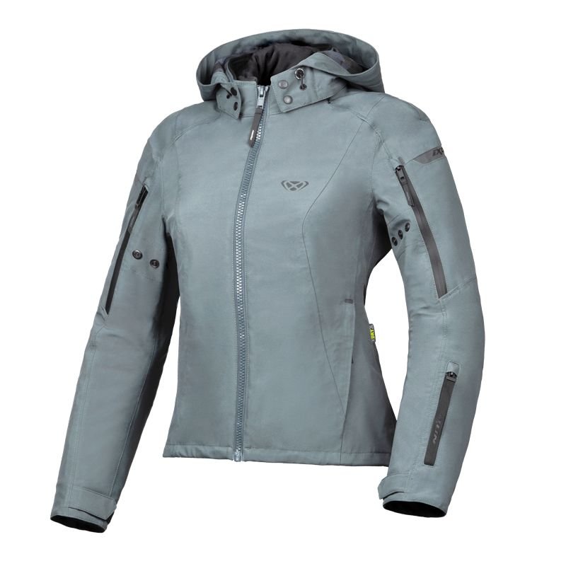 Blouson Ixon BURNING LADY: Présentation: IXON vous propose son blouson textile moto ou scooter femme le BURNING LADY : Matière: En textile XDRY3L laminé 3 couches pour ses propriétés déperlantes et coupe ventDoublure: Membrane XDRY laminée imperméables et respirantes Doublure thermique amovible avec padding soudéProtections: Protections épaules FANOM certifiées CE Protections coudes FANOM certifiées CE Prédisposé à recevoir une protection dorsale homologuée CEVentilation: 2 aérations zippées aux biceps 2 extracteurs dans le dosLes « + »: Col haut avec réhausse Néoprène Capuche avec serrage amovible Patte de serrage Velcro aux poignets Taille élastiquée pour un ajustement personnalisé Système anti-battement pression sur les biceps Fermeture principale avec zip et flap intérieur Inserts réfléchissants capuche + biceps, pour une visibilité optimisée de nuit ou par faible luminosité Airbag Ready : prédisposé à recevoir un gilet Ix-airbag U03 Slim Fit : coupe ajustéePoches: 2 poches mains zippées 1 poche zippée sur l’avant bras 1 poche intérieure 1 poche sur la doublure