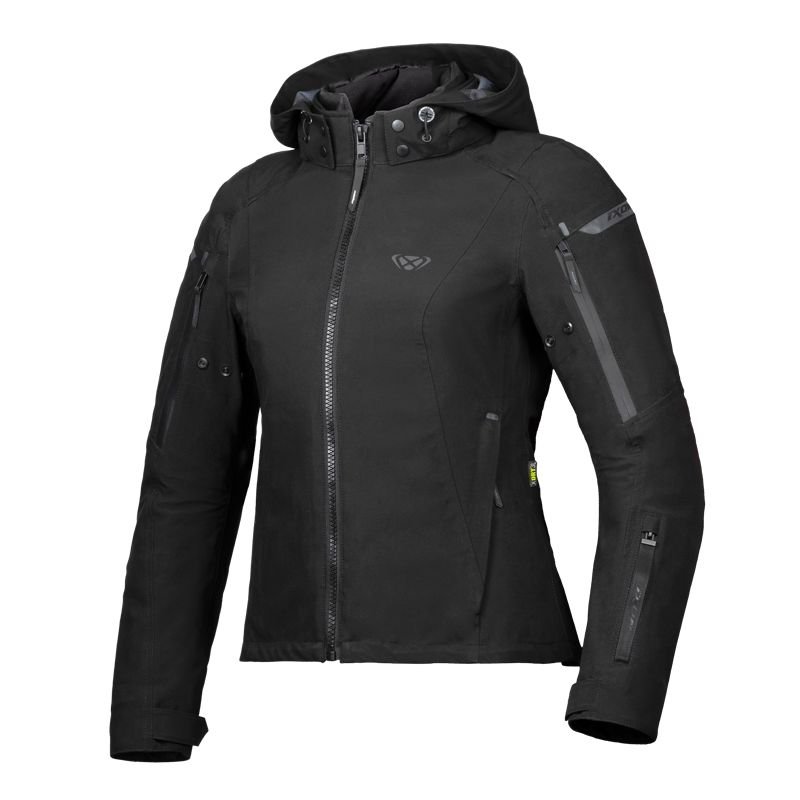 Blouson Ixon BURNING LADY: Présentation: IXON vous propose son blouson textile moto ou scooter femme le BURNING LADY : Matière: En textile XDRY3L laminé 3 couches pour ses propriétés déperlantes et coupe ventDoublure: Membrane XDRY laminée imperméables et respirantes Doublure thermique amovible avec padding soudéProtections: Protections épaules FANOM certifiées CE Protections coudes FANOM certifiées CE Prédisposé à recevoir une protection dorsale homologuée CEVentilation: 2 aérations zippées aux biceps 2 extracteurs dans le dosLes « + »: Col haut avec réhausse Néoprène Capuche avec serrage amovible Patte de serrage Velcro aux poignets Taille élastiquée pour un ajustement personnalisé Système anti-battement pression sur les biceps Fermeture principale avec zip et flap intérieur Inserts réfléchissants capuche + biceps, pour une visibilité optimisée de nuit ou par faible luminosité Airbag Ready : prédisposé à recevoir un gilet Ix-airbag U03 Slim Fit : coupe ajustéePoches: 2 poches mains zippées 1 poche zippée sur l’avant bras 1 poche intérieure 1 poche sur la doublure