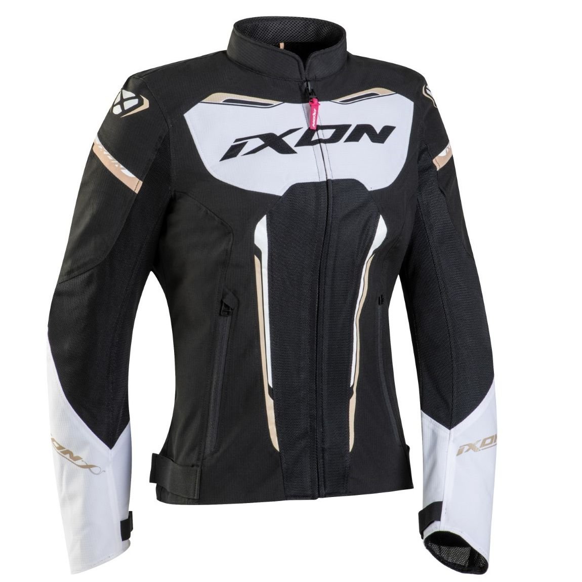 Blouson Ixon STRIKER AIR LD: Présentation: IXON vous propose son blouson textile moto femme ventilée le STRIKER AIR LD : Matière: En polyester 600D dont le tissage offre une haute résistance Empiècements Mesh dont le maillage assure un flux et une circulation de l’air optimisés Inserts en Ripstop Stretch dont l’élasticité procure confort et aisanceDoublure: Doublure fixe en Mesh pour plus de respirabilitéProtections: Protections épaules IX-PROFLEX SEKA-1 homologuées CE de niveau 1 Protections coudes IX-PROFLEX SEKA-1 homologuées CE de niveau 1 Prédisposé à recevoir une protection dorsale homologuée CELes « + »: Col classique avec réhausse Néoprène et fermeture pression Patte de serrage Velcro aux poignets Pattes d’ajustement Velcro à la taille Inserts réfléchissants pour une visibilité optimisée de nuit et par faible luminosité Airbag Ready : prédisposé à recevoir un gilet Ix-airbag U03 REGULAR FIT : coupe droitePoches: 2 poches mains zippées 1 poche intérieure