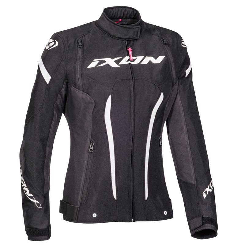 Blouson Ixon STRIKER LADY: Présentation: IXON vous propose son blouson femme textile pour la moto le STRIKER LADY :Matière: En polyester 600D reconnu, grâce à son tissage, pour sa résistance Doublure: Doublure de confort en polyester Membrane étanche et respirante intégrée Doublure thermique 80g amovibleProtections: Protections coudes IX-PROFLEX SEKA-1 souples et ventilées homologuées CE de niveau 1 Protections épaules IX-PROFLEX SEKA-1 souples et ventilées homologuées CE de niveau 1 Prédisposé à recevoir une protection dorsale la IX-PRO BFB-2 niveau 2 ou à bretelle la Warden Comp niveau 2 Les « + »: Col Racing avec fermeture Velcro 2 ventilations zippées sur la poitrine Patte de serrage Velcro aux poignets Patte d’ajustement Velcro aux hanches Boucle de raccordement blouson et pantalon Bandes réfléchissantes à l’arrière des manches Regular Fit : coupe droite classique adaptée à toutes les morphologies Airbag Ready : prédisposé à recevoir un gilet Ix-airbag U03Poches: 2 poches externes zippées 2 poches internes