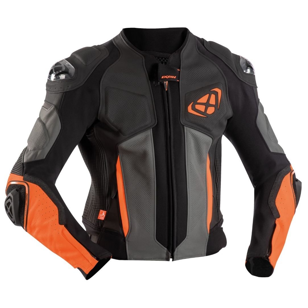 IXON vous propose son blouson cuir moto homme typé Racing le VENDETTA JK EVO :Matière :En cuir de bovin souple et épais reconnu pour sa résistance et sa robustesseRenforts en cuir et en 3D Air Spacer Mesh pour plus de sécurité et une circulation de l’air optimiséePanneaux en cuir de bovin micro-perforé pour un flux d’air optimiséCuir flex sur les côtés, l’arrière des manches et le bas du dos pour plus d’aisanceInserts Stretch à l’intérieur des manches pour plus de mobilité et de confortDoublure :Doublure de confort Mesh pour une circulation de l’air accrueProtections :Protections coudes homologuées CE de niveau 1Protections épaules homologuées CE de niveau 1Sliders injectée bi-densités aux épaules issues du Moto-GPSliders coudes amovibles, ajustables et remplaçablesPrédisposé à recevoir une protection dorsale la IX-PRO BFB-2 niveau 2 ou à bretelle la Warden Comp niveau 2Les « + » :Col RacingPoignets zippés afin de faciliter l’enfilage et la mise en place de la manchette des gantsBosse aérodynamique ultra ventilée avec extracteurs d’air moulésPattes d’ajustement Velcro à la tailleLanière passe pouce afin de garder la manche bien placeRenfort Schoeller Keprotec, textile en fibres d’Aramides pour protection des coutures aux avant-brasAirbag Ready : prédisposé à recevoir un gilet Ix-airbag U03Zip de raccordement blouson et pantalonBandes réfléchissantes en bas des épaules et du dosBody Fit : coupe ajustée près du corpsPoches :2 poches mains zippées1 poche interne1 poche interne étanche zippéeNotre conseil :Vous êtes fan de vitesse et de temps en temps vous vous adonnez à la piste pour votre plus grand plaisir?Nous vous proposons pour obtenir un combinaison 2 pièces le pantalon en cuir moto Racing le VENDETTA PT EVO