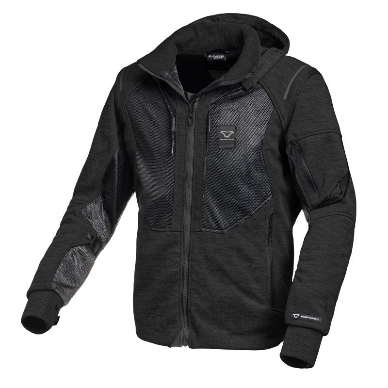 Blouson Macna BREEZE: Présentation: Macna vous présente son blouson moto Breeze : Matière: Conçu en tissu Jersey coton et Mesh polyester résistant Doublure intérieure en maille polyesterProtections: Protections homologuées CE de niveau 1 aux coudes et aux épaules Poche pour protection dorsale disponible en option Blouson moto pour homme certifié CE Les « + »: Panneaux de ventilation sur les bras, la poitrine et le dos pour une meilleure circulation de l’air Capuche est amovible Boutons ajustables aux manches et aux poignets Zipgrip qui facilite la fermeture même avec des gants Poches avant zippées Clip de connexion avec bouton pression pour joindre veste et pantalon Inserts réfléchissants pour être plus visibles lors de la conduite de nuit