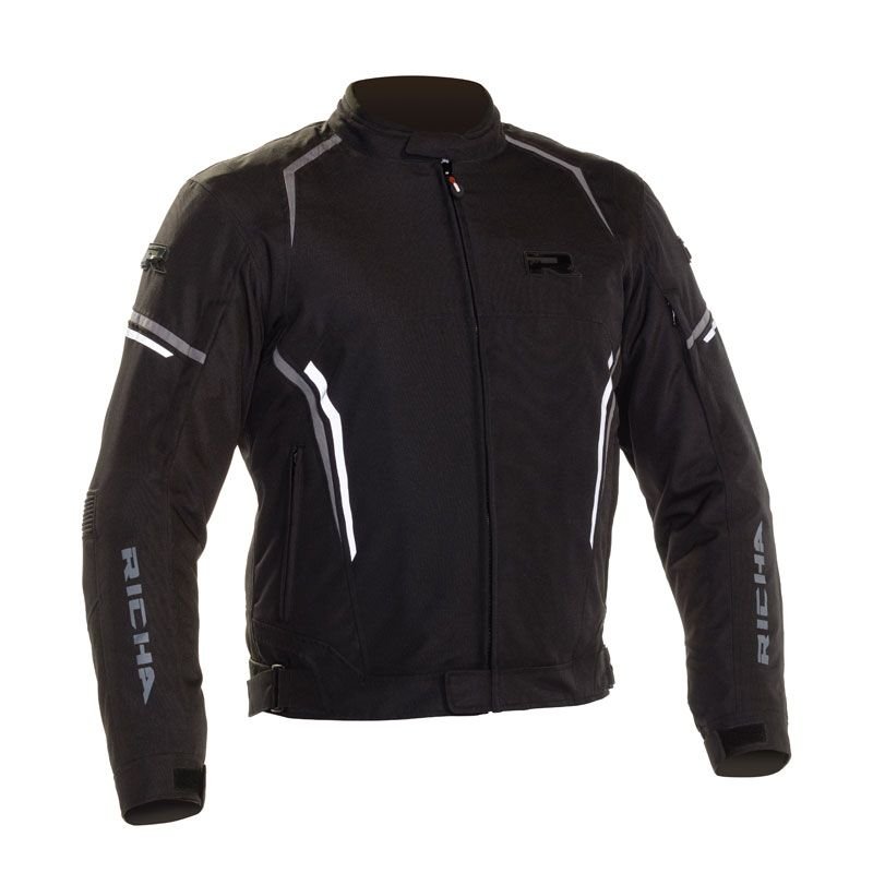 Blouson Richa GOTHAM 2: Présentation: RICHA vous propose son blouson moto textile homme le GOTHAM 2 : Matière: En polyester haute densité enduit de PUDoublure: Membrane Waterproof imperméable et respirante Doublure thermique amovible afin d’affronter chaque saisonProtections: Protections D3O aux épaules homologuées CE Protections D3O aux coudes homologuées CE Prédisposé à recevoir une protection dorsale VIPER 2 niveau 2 Les « + »: Fermeture du col par bande Velcro Patte de serrage Velcro aux poignets Boucles d’ajustement Velcro à la taille Système AVS composé de 4 ventilations zippées pour une aération optimisée Inserts réfléchissants 3M pour une visibilité accrue optimisée de nuit et par faible luminosité SLIM FIT : coupe ajustée 100 % vegan-friendly. Aucune substance animale n’a été utilisée dans le processus de fabricationPoches: 2 poches main zippées 1 poche intérieur