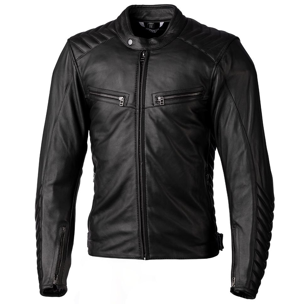 Blouson RST ROADSTER 3: Présentation: RST vous propose son blouson moto en cuir Vintage en cuir le ROADSTER 3 : Matière: En cuir aniline premium reconnu pour sa résistanceDoublure: Doublure fixe en satin Protections: Protections épaules homologuées CE de niveau 1 Protections coudes homologuées CE de niveau 1 Prédisposé à recevoir une protection dorsale disponible en option Les « + »: Col court pression Poignets zippés afin de faciliter l’enfilage Boucles d’ajustement pression à la taille Surpiqûres en « V » à l’aspect matelasséPoches: 4 poches extérieures 1 poche intérieure