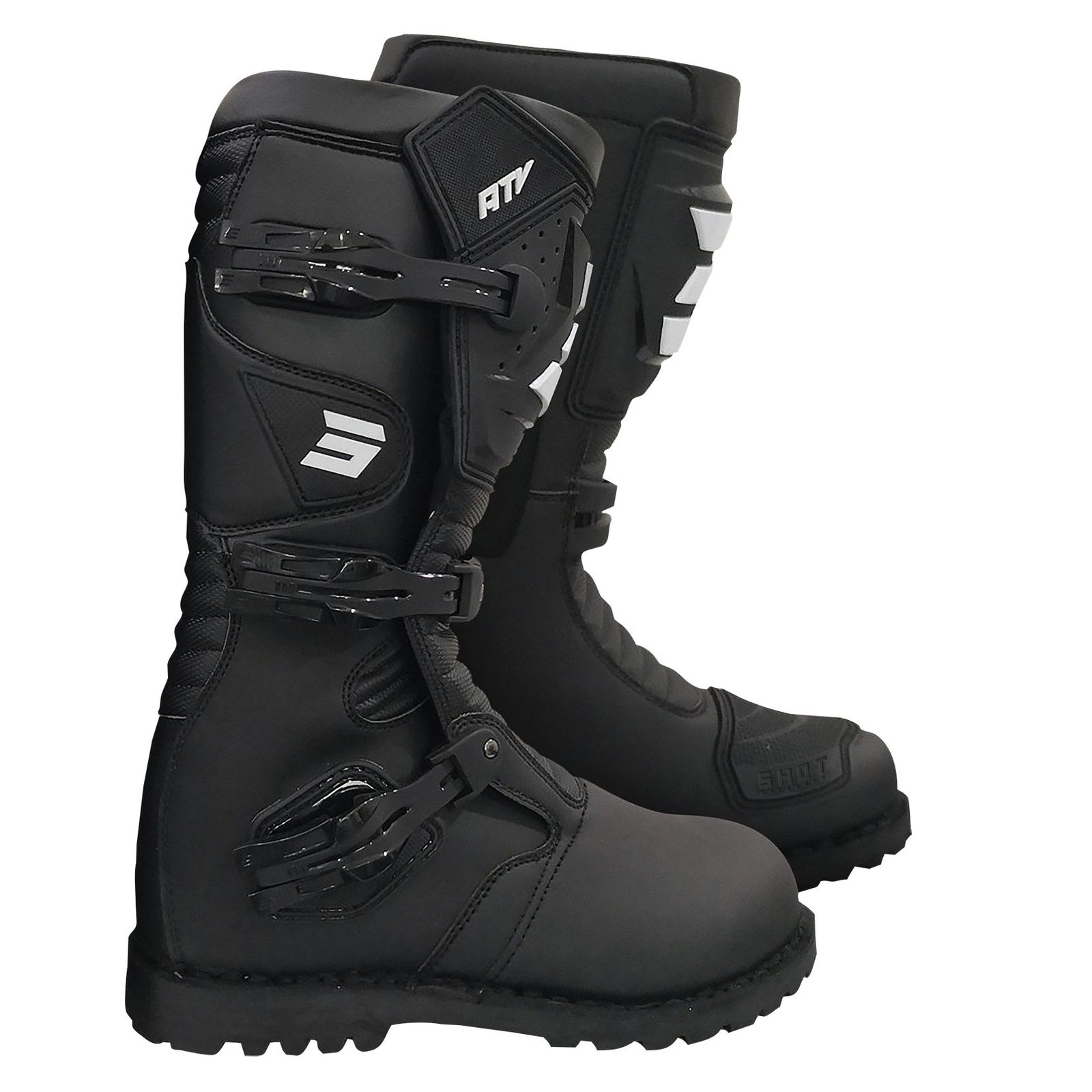 Botte enduro Shot ATV – BLACK 2024: Présentation: SHOT vous propose ses bottes quad adulte les ATV – BLACK : Matière: En cuir renforcé et synthétique premium léger et résistantDoublure: Face interne en cuir naturel renforcé Doublure confortable et respirante Système Waterproof étancheProtections: Renfort de tibia en plastique injecté microperforé Renfort de sélecteurLes « + »: Tige haute avec patte Velcro Fermeture par 3 boucles aluminium interchangeables à double verrouillage et à ajustement micrométrique Soufflets d?aisance au niveau du coup de pied pour plus de confort Semelle double couture extra grip souple Semelle interne détachable et lavable Patch de finition