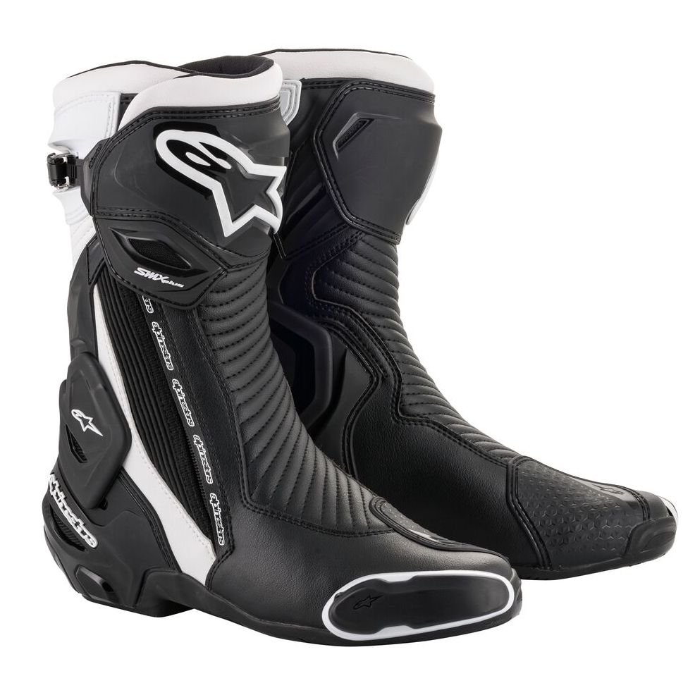 Bottes Alpinestars SMX PLUS V2: Présentation: ALPINESTARS vous propose ses bottes moto sportives homme les SMX PLUS V2 : Matière: Tige en microfibre haute technologie pour sa souplesse et sa résistance Inserts en Mesh respirant et panneaux latéraux perforés Doublure: Doublure synthétique favorisant l’absorption des impacts et la respiration Protections: Renfort sélecteur en cuir Sliders sur l’avant du pied en double densité démontable par vis Slider en TPU interchangeable au niveau du talon New Multi Link Control System maintient la cheville et évite les torsions Protection de cheville moulée avec empiècement absorbant les chocs Les « + »: Zip latéral ave rabat et contour en stretch pour plus de confort Nombreux soufflets d’aisances 360° pour une aisance optimisé Lacets en Kevlar pour solidariser le pied avec la botte Fermeture par boucle micrométrique Protège-tibia contourné en polymère, prouvé en compétition Cambrure fabriquée en fibre de Kevlar® DuPont avec fermeture rapideNotre avis: Une relève attendue et qui assure! Avec une bottes plus fine au niveau du tibia, de nombreux soufflets et un nouvelle ossature concernant le point de pivot offrant une flexibilité surprenante