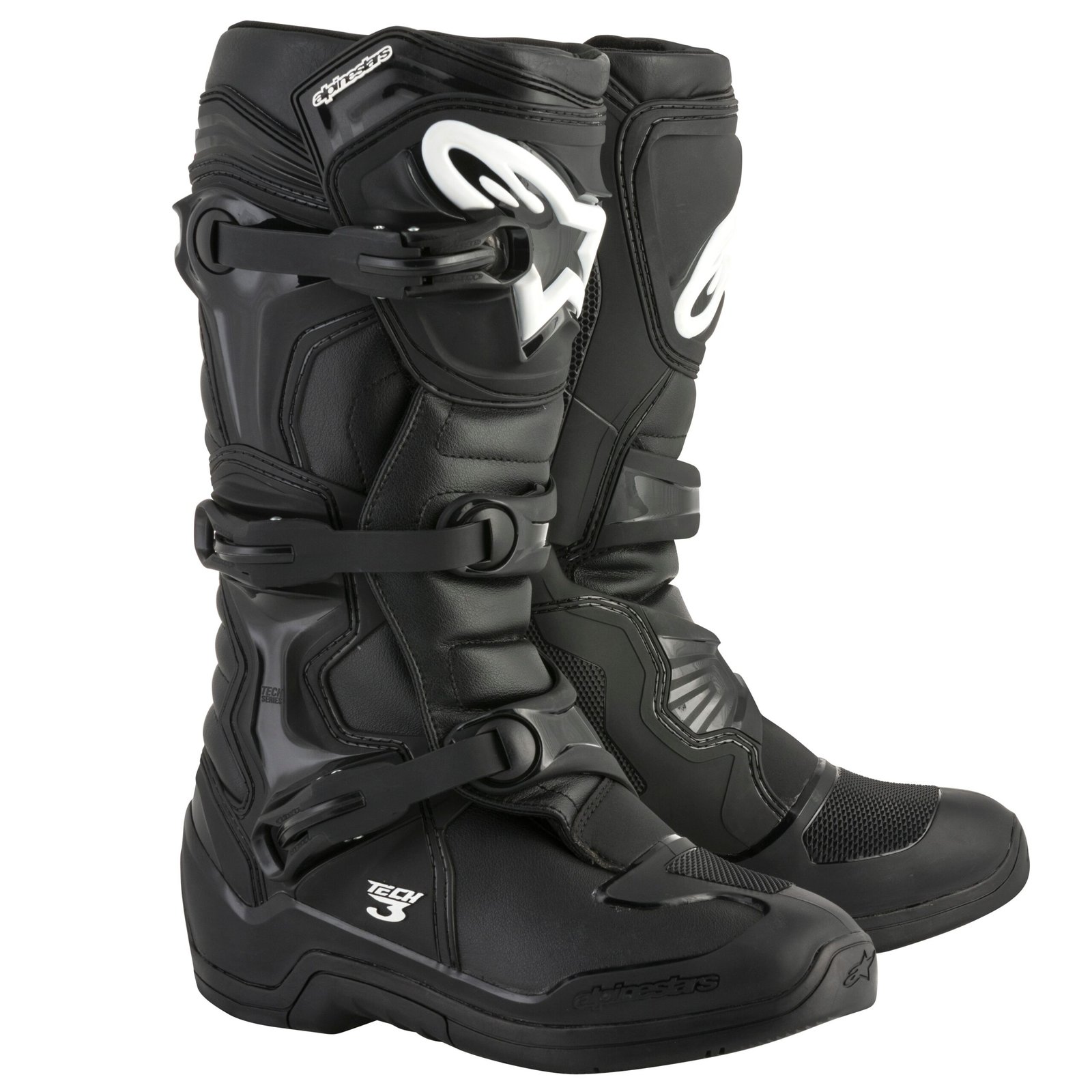 Bottes cross Alpinestars TECH 3 – BLACK 2023: Présentation: ALPINESTARS vous propose ses bottes Tout Terrain TECH 3 – BLACK : Matière: Tige en matière microfibre légère pour flexibilité, durabilité et résistance à l?abrasion Soufflets avant et arrière avec inserts en microfibre légère pour davantage de confort et de flexibilité dans une zone cruciale Bout en matériel synthétique pour résistance à l?abrasion Ample guêtre en PU synthétique pour empêcher l?eau et les saletés de pénétrer à l?intérieur de la botteDoublure: Doublure intérieure entièrement en tissu pour augmenter le confort et la gestion de l?humiditéProtections: Plaque de protection TPU au mollet, protection médiale TPU plus haute, côté extérieur de la cheville TPU et contrefort TPU pour support et résistance aux chocs Guêtre postérieure TPR appliquée en haut de la protection du mollet TPU pour protection et confort pendant la flexion arrière Plaque protège-tibia TPU injectée et reliée au panneau de protection médial TPU ; fermeture de la tige par scratch et rabat TPR pour s?adapter aux différentes dimensions de mollet et support Protection médiale TPU plus haute pourvue de texture technique pour augmenter l?adhérenceLes « + »: Système de fermeture avec 3 boucles en polymère au système de fermeture innovant Cliquet micro réglable à mémoire de réglage Système biomécanique à lames au niveau médial pour une meilleure flexibilité Sangle ergonomique TPU à triple boucle pour flexion frontale douce de la protection médiale au côté latéral sans limiter le mouvement Système de fermeture à décrochage/accrochage rapide à la coupe auto-alignante pour fermer aisément et avec précision les bottes Mousse souple autour des chevilles et en haut de la botte pour confort et absorption des chocs Semelle intérieure à double mélange injecté TPU en une seule pièce innovante et renforcée avec cambion en métal à son intérieur et bout co-injecté Semelle intérieure EVA amovible avec première de propreté pour support au niveau de la voûte plantaire et confort. Semelle, interchangeable, extérieure en mélange de caoutchouc exclusive Alpinestars pour une meilleur adhérence