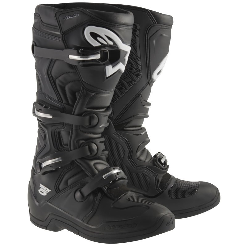 Bottes cross Alpinestars TECH 5 2023: Présentation: ALPINESTARS vous présente ses bottes cross les TECH 5Matière: Tige en cuir pleine fleur et microfibres, résistantes à l’abrasion avec un polymère synthétique sur zone des orteils Tissu renforcé en TPU pour augmenter la résistance à l’eau et l’endurance et réduire le poidsDoublure: Doublure respirante en mesh réduisant l’accumulation de chaleur et améliorant le confort Protections: Renforts au niveau du sélecteur, de la malléole et du tibia Plaque tibiale profilée avec panneau de réglage en Velcro pour une fermeture sécurisée Protection du pied en polyuréthane mono-composée injectée en TPU pour une excellente résistance aux chocs et à l’abrasion et des niveaux de sécurité inégalés Renfort de talon en TPU assurant protection et soutien Poly-mousse souple entourant les chevilles et le col offrant une performance d’absorption des chocs Les « + »: Zones flexibles pour un confort optimal Semelle intérieure anatomique amovible avec doublure en textile Semelle extérieure en caoutchouc double densité Système de fermeture à boucles novatrices, verrouillage rapide et précise et facilement remplaçables Système de libération/verrouillage rapide avec design auto-dressants pour fermeture précise