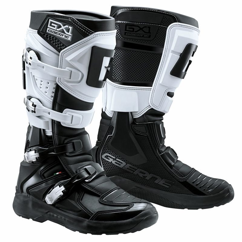Bottes cross Gaerne GX1 EVO BLACK/WHITE 2025: Présentation: GAERNE vous propose ses bottes tout-terrain GX1 EVO : Matière: En cuir pleine fleur offrant souplesse et résistance Soufflet intérieur d’étanchéité, gardant vos pieds toujours au sec Doublure: Doublure intérieure en Mesh offrant une grande respirabilitéProtections: Protection de la cheville et du talon Protection sélecteurLes « + »: Insert antidérapant sur l’intérieur de la botte assurant un bon grip Fermeture par 4 boucles micrométriques en alliage léger, remplaçables Semelle G.LIGHT WELT en caoutchouc haute performance, ultra mince et flexible Semelle entièrement cousue, pour une meilleure résistance