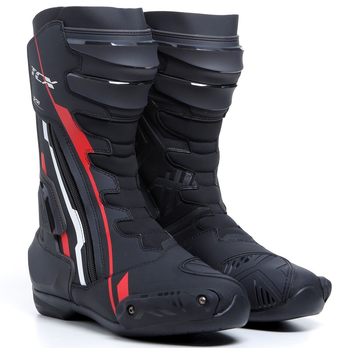 Bottes TCX Boots S-TR1: Présentation: TCX vous présente ses bottes moto racing homme les S-TR1 : Matière: Tige en microfibre, matière synthétique aussi résistante que le cuir Inserts latéraux en tissu extensible Stretch pour plus de confort et d’aisanceDoublure: Doublure mesh Air Tech respiranteProtections: Renfort tibia en PU Renfort malléole avec le système T.C.S (Torsion Control System) afin de limiter les torsions Slider avant en PU interchangeable Talon et pointe renforcés Renfort au niveau du sélecteurLes « + »: Ventilations efficaces pour les climats chauds Fermeture par zip latéral et velcro Semelle plantaire OrthoLite® à amortissement durable et hautement respirante Semelle extérieure Groundtrax® en caoutchouc résistante à l?usure, dessinée pour offrir une stabilité supérieure