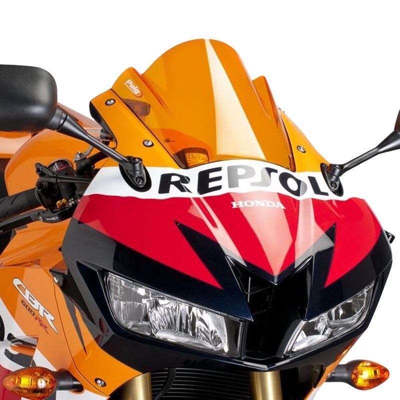 PUIG vous présente la bulle Racing : Bulle issue de la compétition. La double courbure permet de diminuer l?effet de l?air sur le casque. Fabriquée en acrylique à forte résistance aux impacts, elle est résistante aux chocs et au temps. Profil arrondi > 2mm pour les modèles depuis 2004, elle répond à la norme TUV allemande.Pas besoin de rivets.Les bulles RACING sont étudiées en tunnel de vent, elles améliorent le coefficient aérodynamique et la protection contre le vent d?une moyenne d?environ 12.7% par rapport aux bulles d?origine.Elles sont livrées pour leur majorité, avec leur étude aérodynamique respective. Bulle Type « Racing »Dimension (H x L) : 240 x 325 mmElle se monte sur les points de fixation d’origine de la motoLa bulle Racing est spécifique à chaque moto.