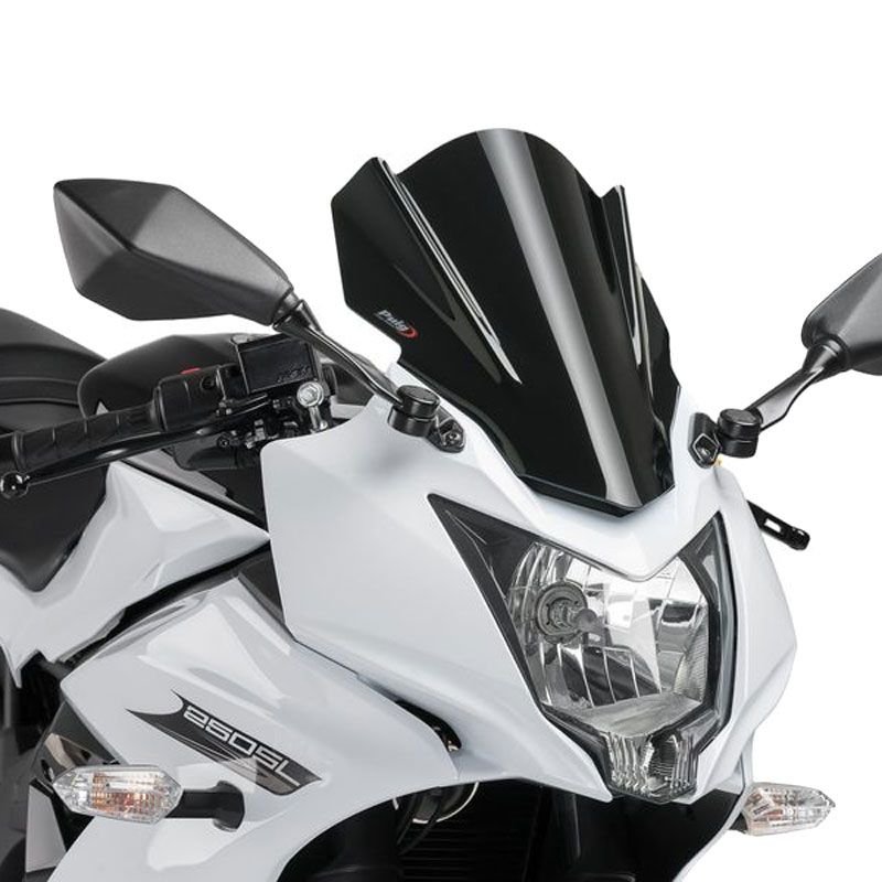 PUIG vous présente la bulle Racing : Bulle issue de la compétition. La double courbure permet de diminuer l?effet de l?air sur le casque. Fabriquée en acrylique à forte résistance aux impacts, elle est résistante aux chocs et au temps. Profil arrondi  > 2mm pour les modèles depuis 2004, elle répond à la norme TUV allemande.Pas besoin de rivets.Les bulles  RACING sont étudiées en tunnel de vent, elles améliorent le coefficient aérodynamique et la protection contre le vent d?une moyenne d?environ 12.7% par  rapport aux bulles d?origine.Elles sont livrées pour leur majorité, avec leur étude aérodynamique respective. Bulle Type « Racing »Dimension (H x L) : 345 x 270 mmElle se monte sur les points de fixation d’origine de la motoLa bulle Racing est spécifique à chaque moto.