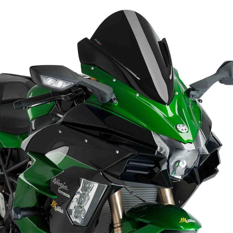 PUIG vous présente la bulle Racing : Bulle issue de la compétition. La double courbure permet de diminuer l?effet de l?air sur le casque. Fabriquée en acrylique à forte résistance aux impacts, elle est résistante aux chocs et au temps. Profil arrondi  > 2mm pour les modèles depuis 2004, elle répond à la norme TUV allemande.Pas besoin de rivets.Les bulles  RACING sont étudiées en tunnel de vent, elles améliorent le coefficient aérodynamique et la protection contre le vent d?une moyenne d?environ 12.7% par  rapport aux bulles d?origine.Elles sont livrées pour leur majorité, avec leur étude aérodynamique respective. Bulle Type « Racing »Dimension (H x L) : 400 x 390 mm+ 15 mm supérieur à l’originalElle se monte sur les points de fixation d’origine de la motoLa bulle Racing est spécifique à chaque moto.