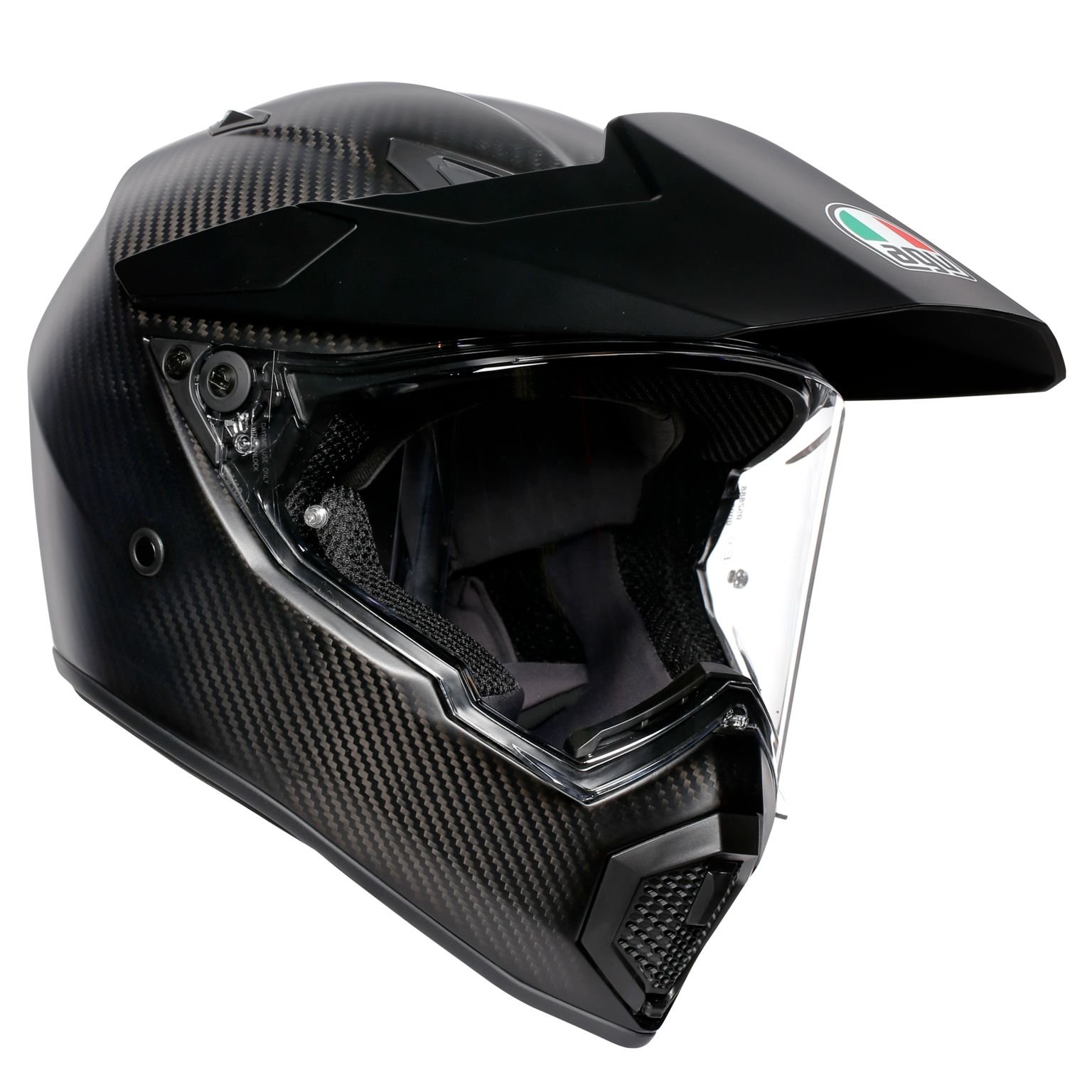 AGV vous propose son casque intégral moto crossover l’AX9 – MATT CARBON offrant une plage d’utilisation et de plaisir plus large aux conducteurs de deux-roues:Sécurité :En fibres de carbone, aramide et de verre pour sa résistance aux impact et sa légèreté avec un poids de 1365g +/-50EPS 4 densités pour une absorption des chocs optimiséeFermeture de la jugulaire par boucle Double-D efficace et sécurisanteVisibilité :Ecran incolore Max vision traité anti rayureLivré avec un film Max Vision Pinlock afin de lutter contre la buéeMicro système d’ouverture pour stimuler le flux d’airChamps de vision vertical à 110° offrant un excellente visibilité vers le bas en position deboutVentilations IVS (Integrated Ventilation System) :3 grands évents sur l’avant pour un flux d’air optimisé2 extracteurs sur l’arrière afin d’expulser l’air vicié et chaudDéflecteur interne sur l?extracteur d?air de la mentonnièreToutes les entrées et sorties sont réglablesGrille d’aération de la mentonnière amovible sans outilsLes « + » :Intérieur entièrement démontable et lavableIntérieur en tissu Shalimar au toucher doux et délicatTour de cou en tissus Shalimar et nubuck soumis à un traitement résistant à l’eauIntérieure conçue pour permettre un ajustement sans pression et pour réduire le bruit à l’intérieur du casqueIntérieur conçu pour les porteurs de lunetteCasquette amovible limitant la prise de vent et favorisant la stabilité à haute vitessePossibilité d’ôter l’écran afin d’utiliser le casque avec des lunettes Off RoadPrédisposé à recevoir un système de communicationBavette anti-remous amovibleNotre avis :Ce casque crossover se montre extrêmement polyvalent, proposant 4 configurations différentes possibles en enlevant tout simplement la visière supérieure redessinée et l?écran ultra-panoramique.Celui-ci conçu en fibres assure légèreté et sécurité avec in intérieurs haut de gamme pour un confort de voyage illimité !
