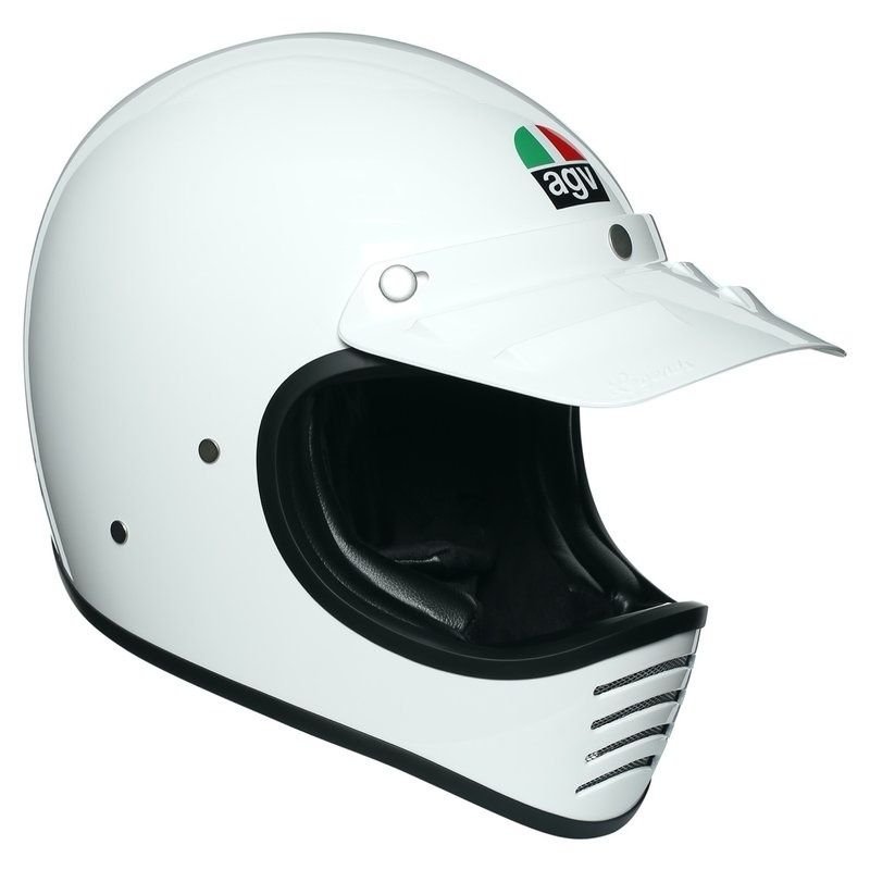 Casque AGV X101 – SOLID: Présentation: AGV vous propose son casque intégral moto à l’esprit Vintage le X101 – SOLID, l’esprit du Dakar vous accompagne dans vos trajets quotidiens : Sécurité: En fibres de verre reconnu pour sa résistance aux impacts et aux chocs avec un poids de 1320g +/-50 EPS Multi-densité pour une absorption des chocs optimisée Fermeture de la jugulaire par boucle Double-D la plus sécurisante du marchéVisibilité: Large ouverture permettant d’inclure un masqueVentilation: 1 entrée d’air maillé en métal à la mentonnièreLes « + »: Intérieur entièrement démontable et lavable Intérieur en Daim assurant un confort et une douceur optimales Tour de cou en cuir Casquette amovibleNotre avis: Inspiré des légendaires rallyes Dakar, conçu pour les nouveaux défis d’aujourd’hui. Ce casque moto intégral est tout droit inspiré des modèles historiques utilisés dans les rallyes Dakar des années 1970s et 1980s !Conçue à l’origine pour protéger du soleil brûlant des déserts sablonneux, la casquette solaire est amovible et personnalisable.La grille métallique de la mentonnière est conçue pour garantir une grande ventilation et protéger de la poussière et des débris.
