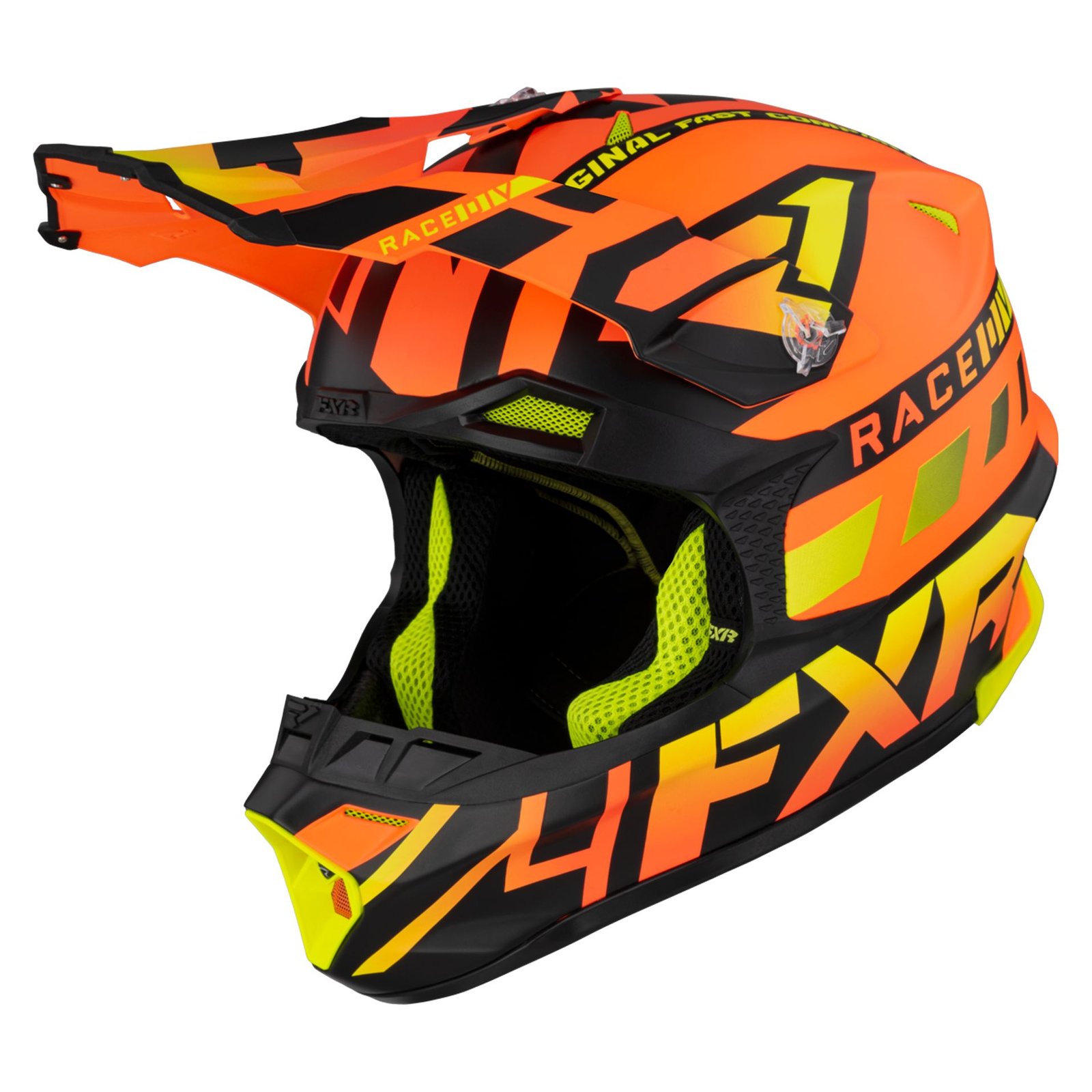 Casque cross FXR BLADE FORCE ORANGE 2021: Coque: Coque en fibre composite Super-Lite construite à partir de fibre de carbone de qualité aérospatiale, Kevlar® et fibre de verre 3 tailles de coque pour un ajustement optimal Aération buccale a haut débit Vis à 3 points de rupture, faciles à utiliser pour les gants La forme à haut débit réduit la traînéeProtections: Fermeture double D en titane Le diffuseur arrière résistant aux intrusions transfère la charge d’impact aux protège-nuques compatibles Noyau de sécurité en EPS à double densité Mentonnière EPS absorbant les chocsLes « + »: Contrôle d’évent 365 ultra-haut débit pour une utilisation toute l’année Coussinets de joues à densité progressive Doublure confort authentique Cool-Max traitée hygiéniquement, amovible et lavable Poids: à partir de 1250G