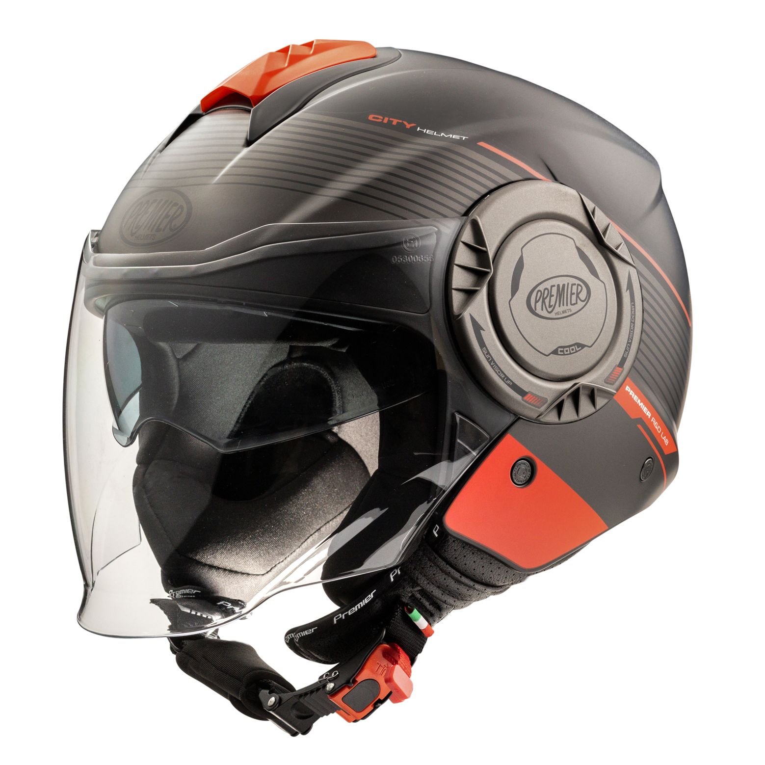 Casque Premier COOL – CH92BM: Présentation: PREMIER vous propose son casque moto jet le COOL – CH92BM : Sécurité: En Polycarbonate reconnu pour sa résistance aux impacts pour un poids de 1300g +/-50 EPS Multi-densité pour une absorption des chocs optimisée Fermeture de la jugulaire par boucle micrométrique rapide et efficaceVisibilité: Ecran long moulée incolore Ecran traité anti-rayures Ecran solaire intégré rétractable Ecran solaire traité anti-UVVentilation: Large prise d’air supérieure garantissant un flux d’air idéal à l’intérieur du casqueLes « + »: Intérieur entièrement démontable et lavable Intérieur en tissu Sanitized® anallergique et respirant