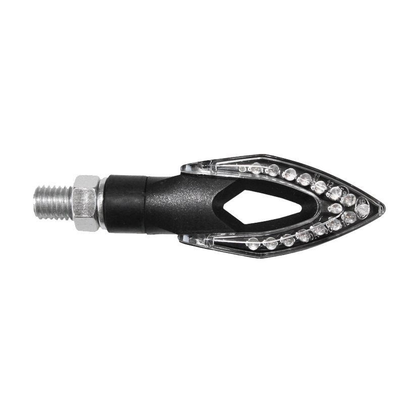 Barracuda vous présente les clignotants à leds Freccia:Les clignotants Freccia sont homologués, à leds et coque en ABS Design futuriste Vendu par paire Résistances de 10 ou 21 watts sont conseillés (vendues séparément) Dimension: longueur: 74 mm largeur: 26 mm