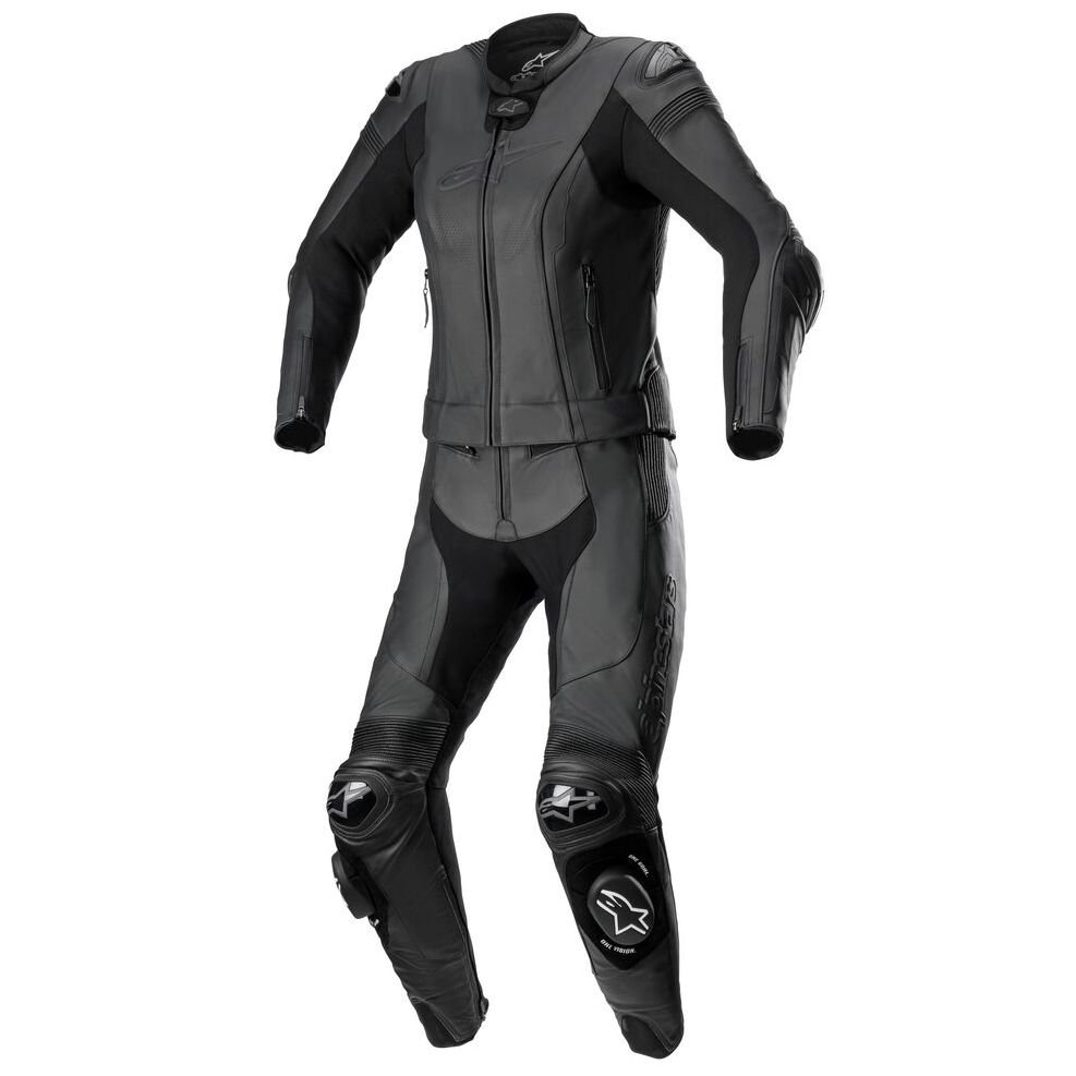 Combinaison Alpinestars STELLA MISSILE V2 – 2 PIECES – TECH-AIR® COMPATIBLE: Présentation: ALPINESTARS vous propose sa combinaison cuir femme 2 pièces la STELLA MISSILE V2 – 2 PIECES – TECH-AIR® COMPATIBLE : Matière: En cuir de bovin premium 1.3 mm double couche réputé pour sa souplesse et sa grande résistance Empiècements en cuir perforé pour un flux d’air optimisé Panneaux de tissu stretch sur les manches et l’entrejambe améliorant l’ajustement et le confort Col en tissu 3D texturé afin d’éviter les irritationsDoublure: Doublure de confort amovible en maille Mesh, confortable et respirante  Renforts multi couches aux genoux favorisant le grip avec la moto Protections: Protections épaules GP-R RACE certifiées CE Protections coudes GP-R RACE certifiées CE Protections genoux GP-R RACE certifiées CE Protections tibias GP-R RACE certifiées CE Protections hanche Bio-Flex certifiées CE Prédisposé à recevoir, sur un système de boutons pressions au niveau du dos, la protection dorsale Nucleon Back Protection certifiée CE niveau 2 Prédisposé à recevoir une protection poitrine Nucleon Flex Pro Ci Sliders d’épaules DFS Sliders de coudes DFS Sliders genoux amovible offrant plus de durabilitéLes « + »: Bosse aérodynamique pour plus de performance à haute vitesse Manches et jambes pré-courbées pour un confort immédiat Fermeture à glissière de connexion pantalon et blouson Soufflets d’aisance pour plus de confort en position de conduite Poignets et mollets zippés afin de faciliter l’enfilage Zip de raccordement blouson et pantalon Race Fit : coupe ajustée près du corps Compatible avec le gilet airbag TECH AIR 10 Airbag SystemPoches: 2 poches extérieures sur le blouson 1 poche interne étanche sur le blouson