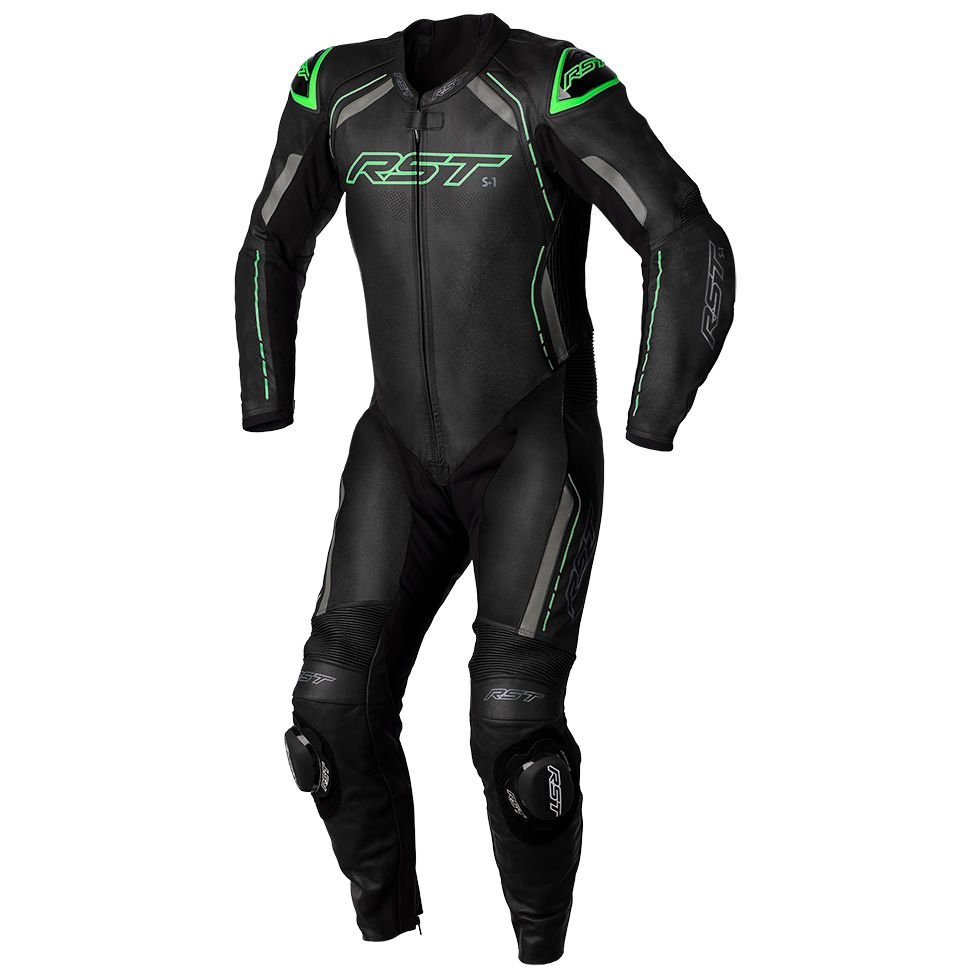 Combinaison RST S1: Présentation: RST vous propose sa combinaison moto en cuir homme la S1 : Matière: En cuir de vachette reconnu pour sa résistance Panneaux en cuir perforé pour un flux et une circulation de l’air optimisés Empiècements en Stretch quadri directionnel dont l’élasticité pour plus de confort sur la motoDoublure: Doublure de confort fixe en Mesh pour plus de respirabilitéProtections:  Protections épaules homologuées CE de niveau 1 Protections coudes homologuées CE de niveau 1 Protections hanches homologuées CE de niveau 2 Protections genoux homologuées CE de niveau 1 Slider d’épaules Prédisposé à recevoir une protection dorsale disponible en option Livré avec des Sliders de genoux en compositeLes « + »: Col Racing avec réhausse Néoprène Mollets zippés afin de faciliter l’enfilage Soufflets d’aisance pour une liberté de mouvement optimisée en position de conduite Bosse aérodynamique