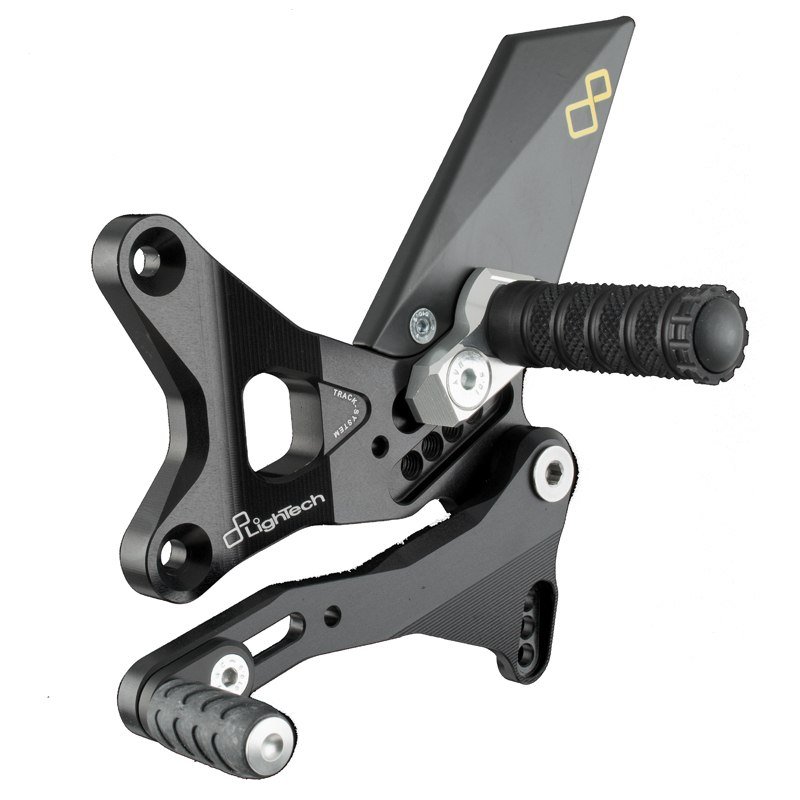 Lightec vous présente les commandes reculées pliables moto:Possibilité de montage en vitesses standard ou inverséesRepose pied pliables apportant une sécurité à la moto en cas de chute, l’arrachement est ainsi évitéDotées d un système de réglage unique apportant confort et sécurité de pilotage sans égal sur votre moto8 positions de réglage du repose pied Equipées du Track Système permettant d optimiser rapidement l’ajustement du repose pied via un système simple de rotation Sélecteur et pédale de frein montés sur roulementTaillées dans la masse offrant une rigidité exceptionnelle Protège talon en aluminium ajouréHomologuées TUV, ABE, FIM et FMMFaciles à installer sur la moto Utilisation route / piste