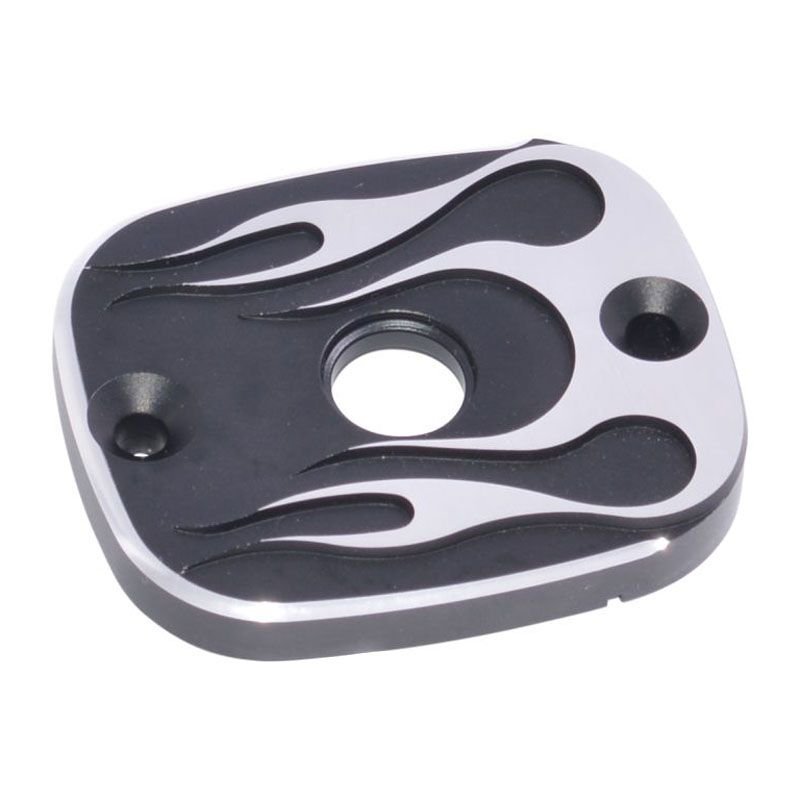Highway Hawk vous présente le couvercle de maître cylindre pour Harley Davidson, en aluminium taillé dans la masse avec illustration de flamme.Moto Harley Davidson (voir la liste moto compatible).