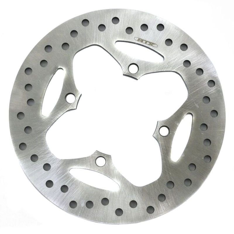 MTX Disc vous présente le disque de frein pour moto, fabriqué en acier inoxydable japonais type « SUS 420 » pour assurer une excellente résistance et durabilité.Parfait remplacement pour montage original. Optimisation avec des trous d’allègement pour le rendre léger et égaliser l?usure des plaquettes.La technologie de précision d?usinage par CNC et la découpe au laser garantissent une qualité optimale. Type de profil rondPosition: arrièreQualité: origineDimension externe: 220 mmVendu à l’unité et sans visserie
