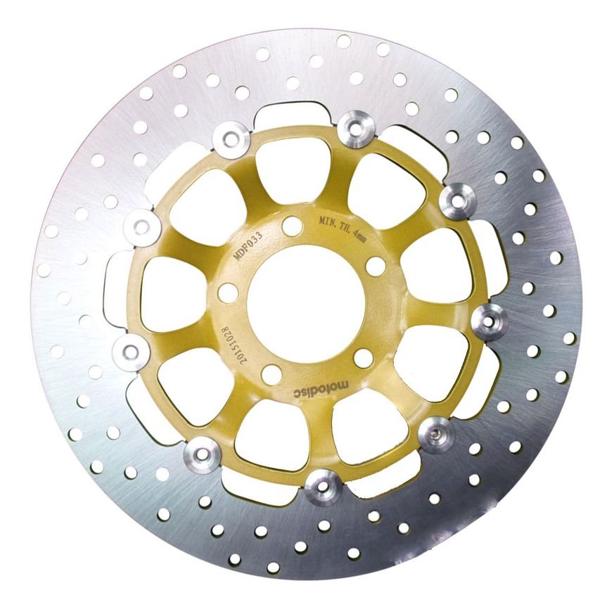 MTX Disc vous présente le disque de frein pour moto, fabriqué en acier inoxydable japonais type « SUS 420 » pour assurer une excellente résistance et durabilité.Parfait remplacement pour montage original. Optimisation avec des trous d’allègement pour le rendre léger et égaliser l?usure des plaquettes.La technologie de précision d?usinage par CNC et la découpe au laser garantissent une qualité optimale.Type de profil rondPosition: avant gauche ou droitQualité: origineDiamètre externe: 310 mmDiamètre interne: 144 mmDimension: 166 x 6 x 10.5 mmÉpaisseur: 6 mmVendu à l’unité et sans visserie
