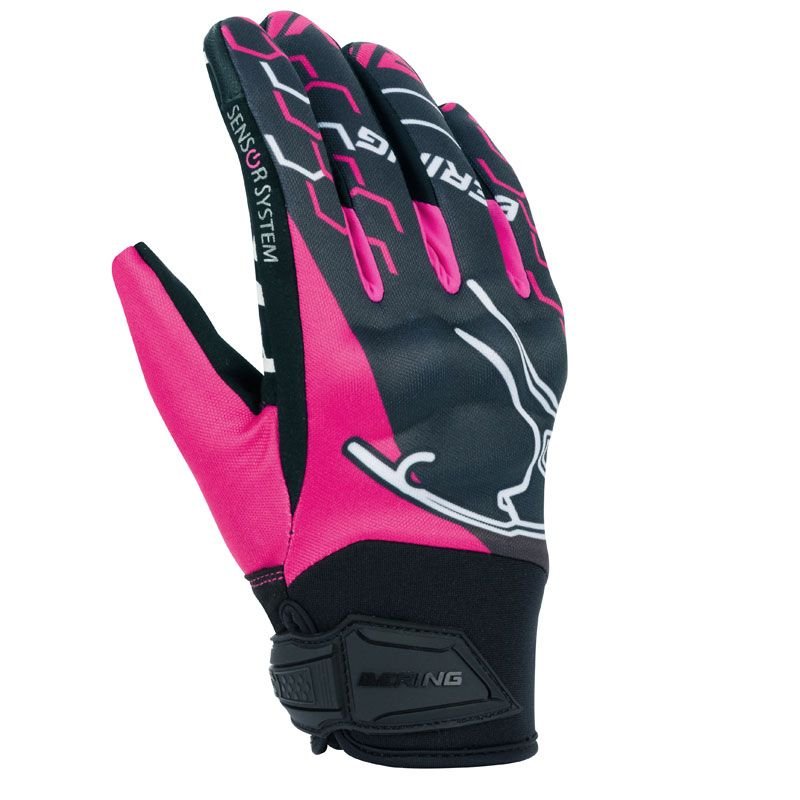 Gants Bering LADY WALSHE: Présentation: BERING vous propose ses gants moto été femme les LADY WALSHE : Matière: En polyester et Néoprène pour plus de confort Paume en Amara reconnu pour sa résistance et sa souplesseDoublure: Doublure en PolyesterProtections: Coque de protection homologuée CE Paume renforcéeLes « + »: Manchette courte Patte de serrage par bande Velcro Empiècements Grip pour une meilleur préhension Sensor System permettant d’utiliser vos écrans tactiles sans ôter vos gants