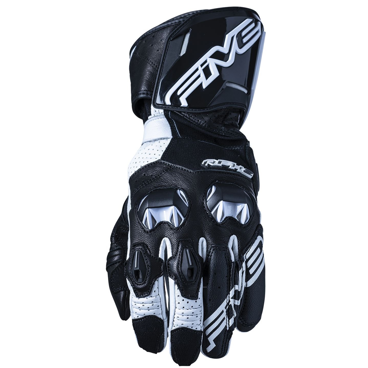 Gants Five RFX2.20: Présentation: FIVE vous propose ses gants Racing moto homme les RFX2.20 : Matière: En cuir de chèvre pleine fleur pour son extrême souplesse et sa résistance Panneaux d?aisance en Stretch Cordura® autour du pouce et extrémité index et majeurDoublure: Doublure en Kevlar® sur le dessus de la main et autour du pouce pour une résistance accrueProtections: Coques de protection ventilées des phalanges en TPU Renforts métacarpiens en mousse caoutchouc 5mm d?épaisseur Paume renforcée en cuir synthétique et impression silicone pour plus d’adhérence Slider de paume en TPU Pont  anti-torsion accordéon entre l?auriculaire et l?annulaireLes « + »: Manchette longue avec coque de protection en TPU Double patte de serrage  Coutures retournées, fil Gütermann, pour un confort optimal Languette en cuir pour ajuster les gants  Cuir perforé dans les zones stratégiques pour assurer une bonne ventilation Signature V-Five sur l’index et le majeur de couleur rouge sur la main gauche Logo Five en TPR sur le poignet