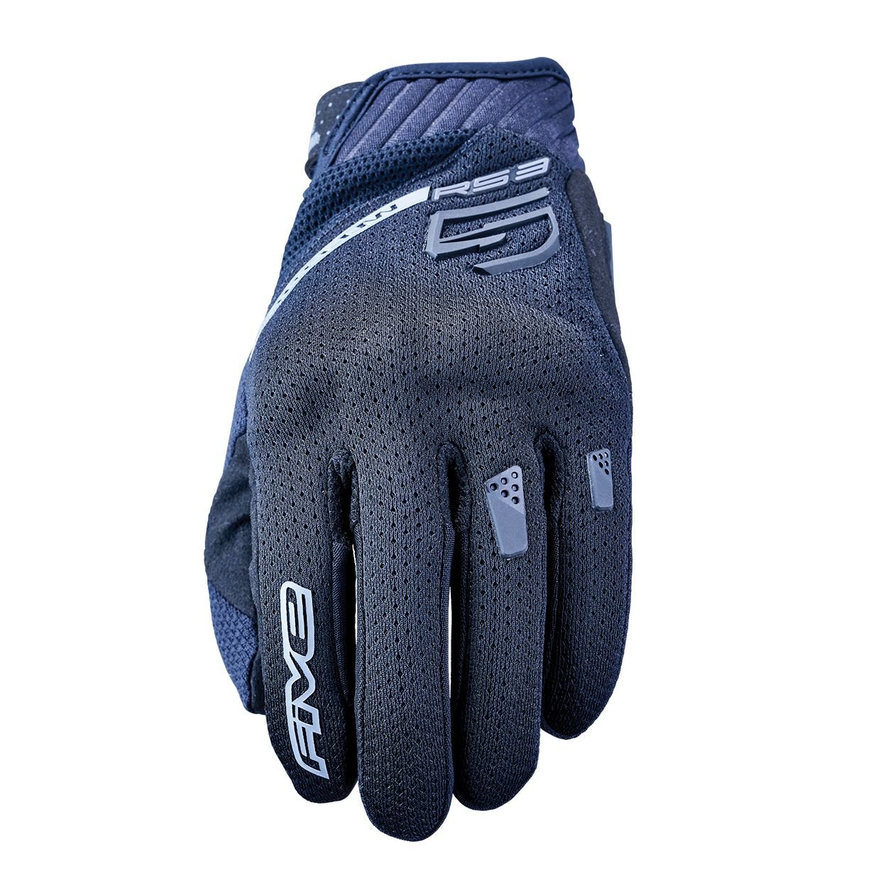 Gants Five RS3 EVO AIRFLOW: Présentation: FIVE vous propose ses gants moto homme les RS3 EVO AIR : VEGAN *FRIENDLY*Matière: Dos en tissu Mesh alvéolé pour un flux d’air optimisé Paume en cuir synthétique reconnu pour sa résistance et sa durabilité Fourchettes de doigt One Way Stretch? pour un fitting optimal Protections: Coques de protection des métacarpes monobloc FIVE ERGO PROTECH® en TPR sous tissu Protections des phalanges en TPR Slider de paume en TPRLes « + »: Manchette courte Poignet Airprene® pour l?ajustement, le confort et l?évacuation de la transpiration Patte de serrage Velcro® Languette d?enfilage Pull?N?Ride?  Index Touch Screen? afin d’utiliser les écrans tactiles sans ôter vos gants