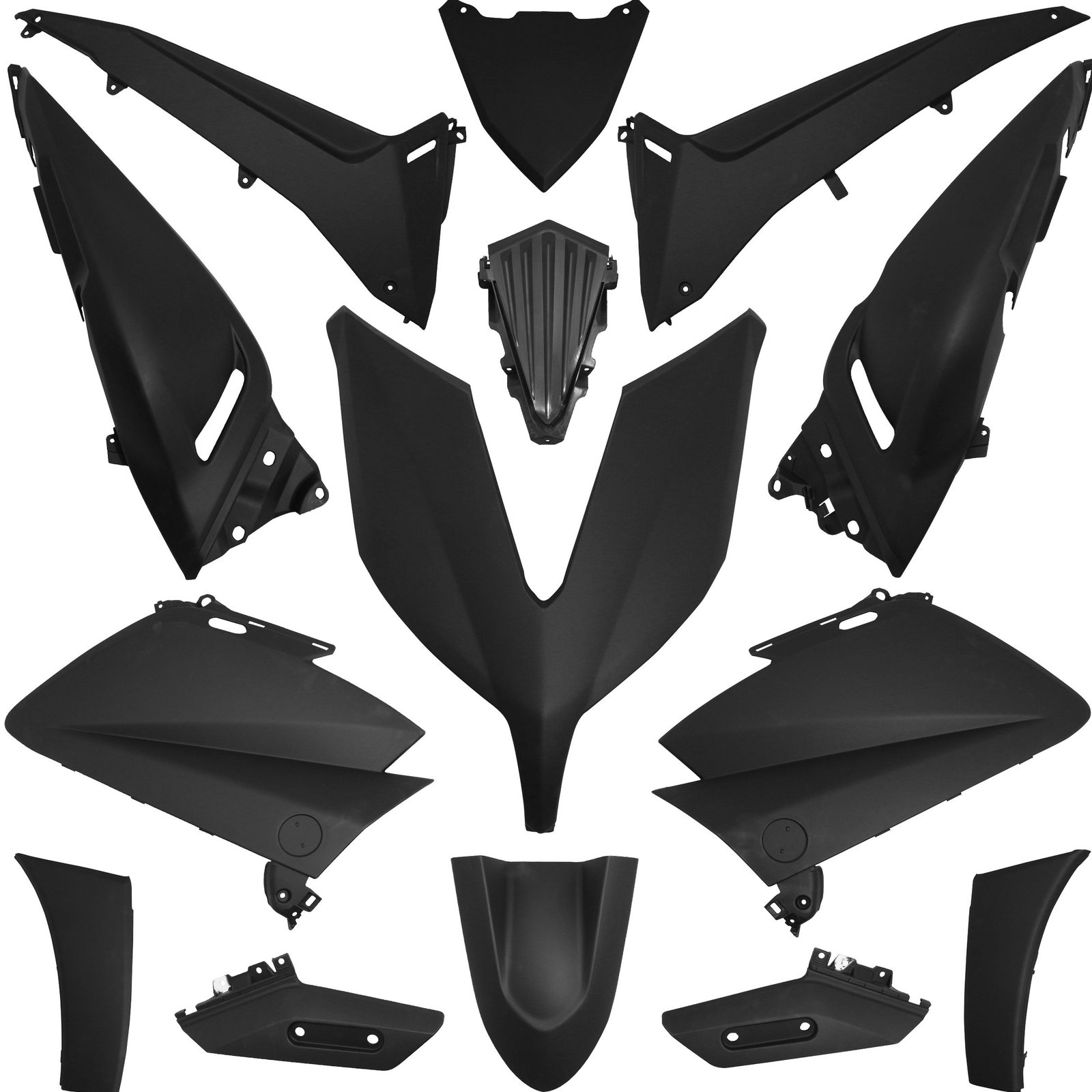 P2r vous présente le kit de carénage pour maxi-scooter:Le kit comprend 14 piècesCouleur: noir matLivré sans visserieLe carénage complet est spécifique à chaque maxi-scooter.
