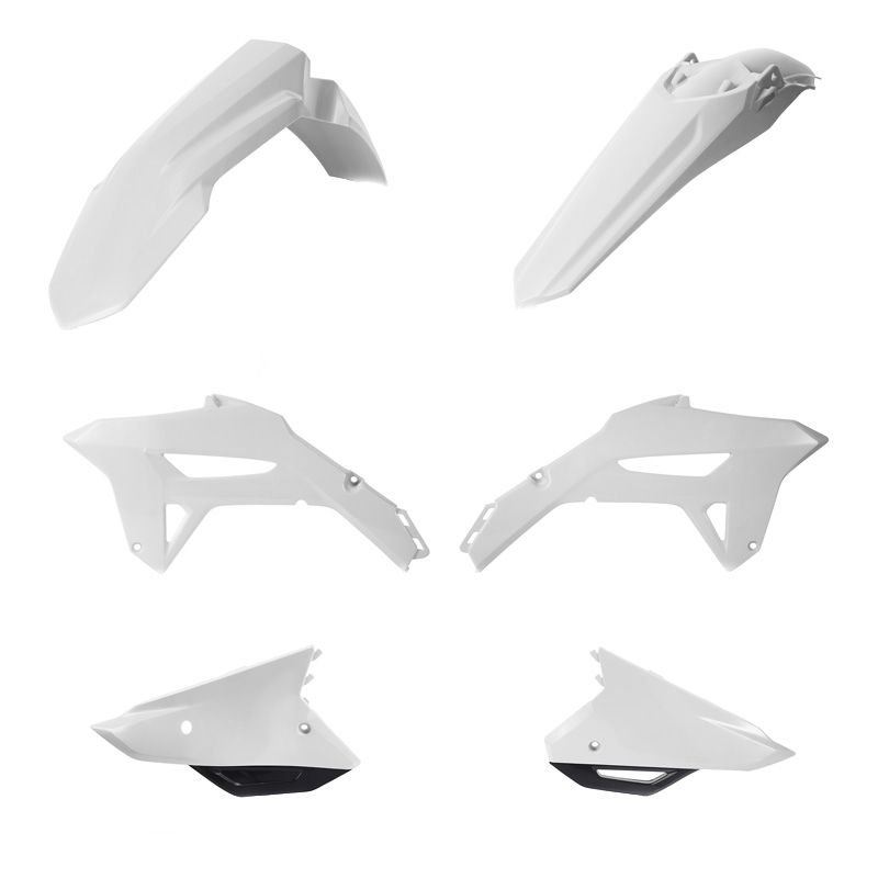 Le kit plastique Acerbis est composé de1 garde-boue avant1 garde-boue arrière2 plaques latérales2 ouïes de radiateurs Couleur blanc/noir
