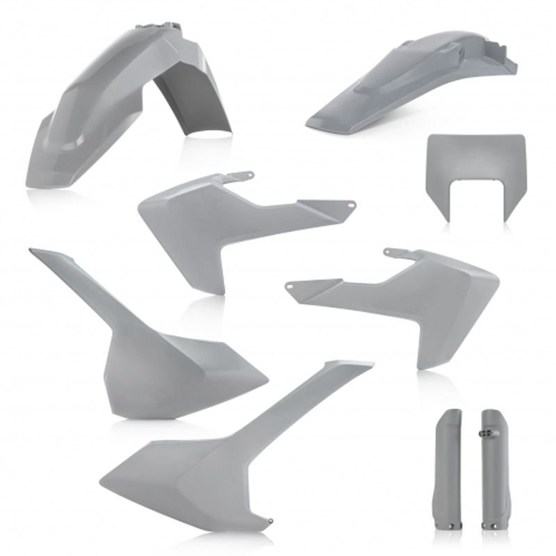 Acerbis vous présente le kit plastique Full : 1 garde boue avant1 garde boue arrière1 plaque frontale2 ouïes de radiateur2 plaques latéralesBas de fourcheCouleur gris