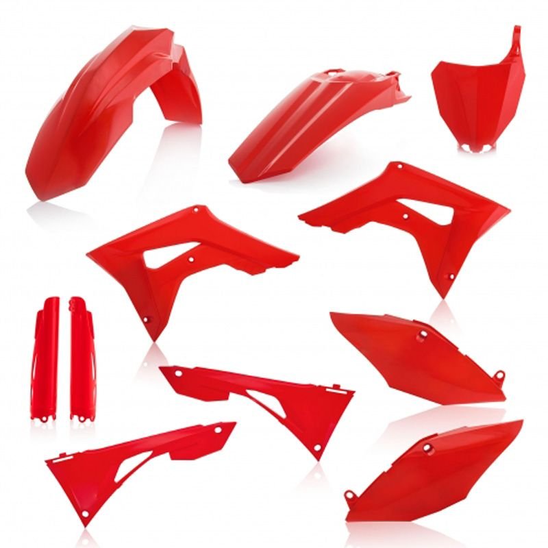 Acerbis vous présente le kit plastique Full : 1 garde boue avant1 garde boue arrière1 plaque frontale2 ouïes de radiateur2 plaques latéralesBas de fourcheCouleur rouge
