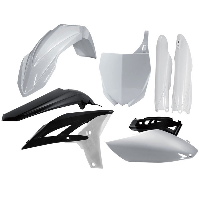Acerbis vous présente le kit plastique full réplica:1 garde boue avant1 garde boue arrière1 plaque avant2 ouïes de radiateur2 plaques latérales2 bas de fourcheCouleur origine blanc année 2010