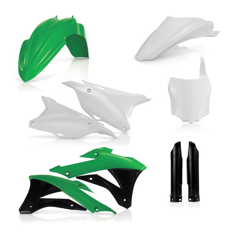Acerbis vous présente le kit plastique Full factory: 1 garde boue avant1 garde boue arrière1 plaque frontale2 ouïes de radiateur2 plaques latéralesBas de fourche