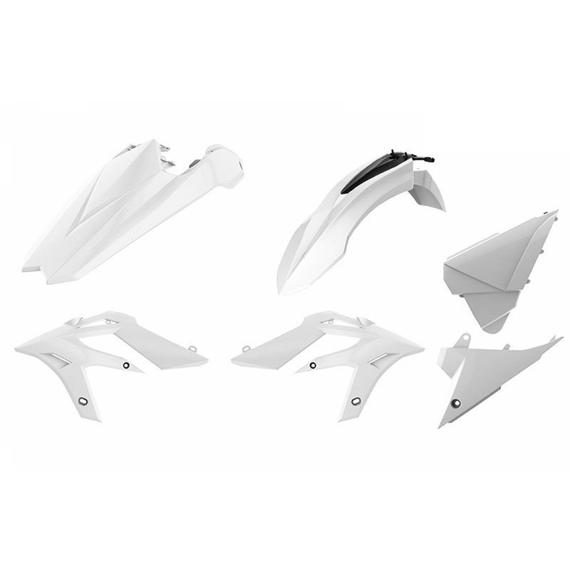 Les plastiques Polisport sont fabriqués en plastique injecté à partir des technologies développées par la marque elle-même. Tous les plastiques sont dotés du DGP (Durable Gloss Polypropylène) dont les principaux avantages sont une résistance élevée et une belle finition brillante.Le kit comprend:Garde-boue avantGarde-boue arrièreOuïes de radiateurPlaque latéraleCache boite à airIdentique aux plastiques utilisés en MXGPCouleur blanc
