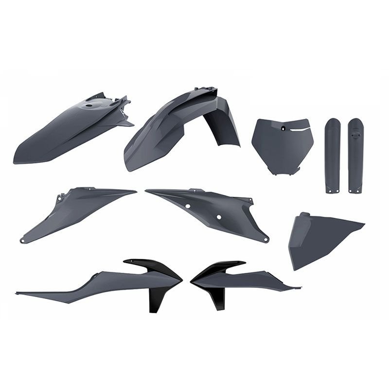 Les plastiques Polisport sont fabriqués en plastique injecté à partir des technologies développées par la marque elle-même. Tous les plastiques sont dotés du DGP (Durable Gloss Polypropylène) dont les principaux avantages sont une résistance élevée et une belle finition brillante.Le kit comprend:Garde-boue avantGarde-boue arrièreCache boite a airOuïes de radiateurPlaque frontalePlaque latéraleProtections de fourcheIdentique aux plastiques utilisés en MXGPCouleur gris